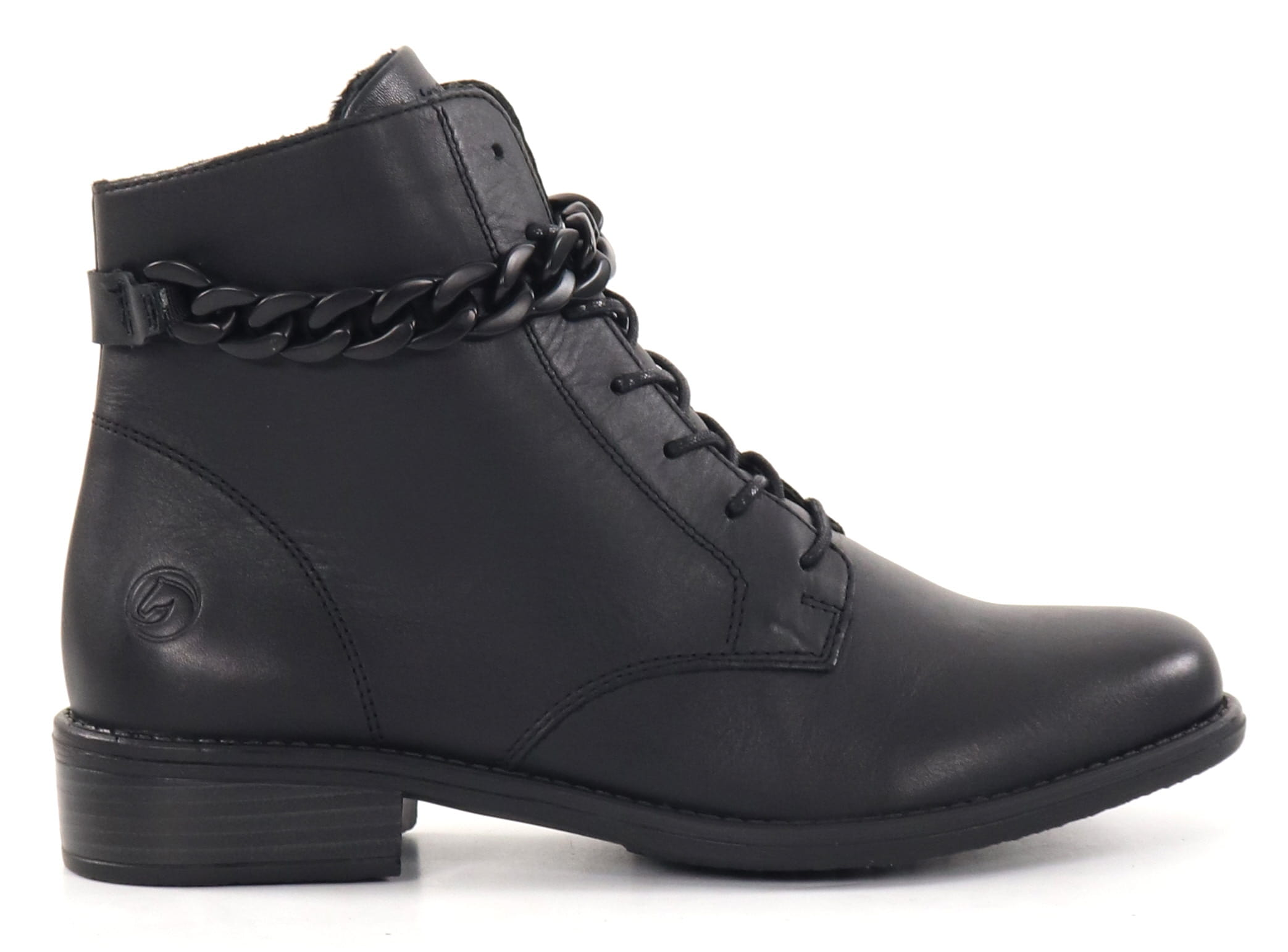 Stylish and versatile leather ankle boots with a removable insole. Removable chain-like decoration at the top of the shaft.