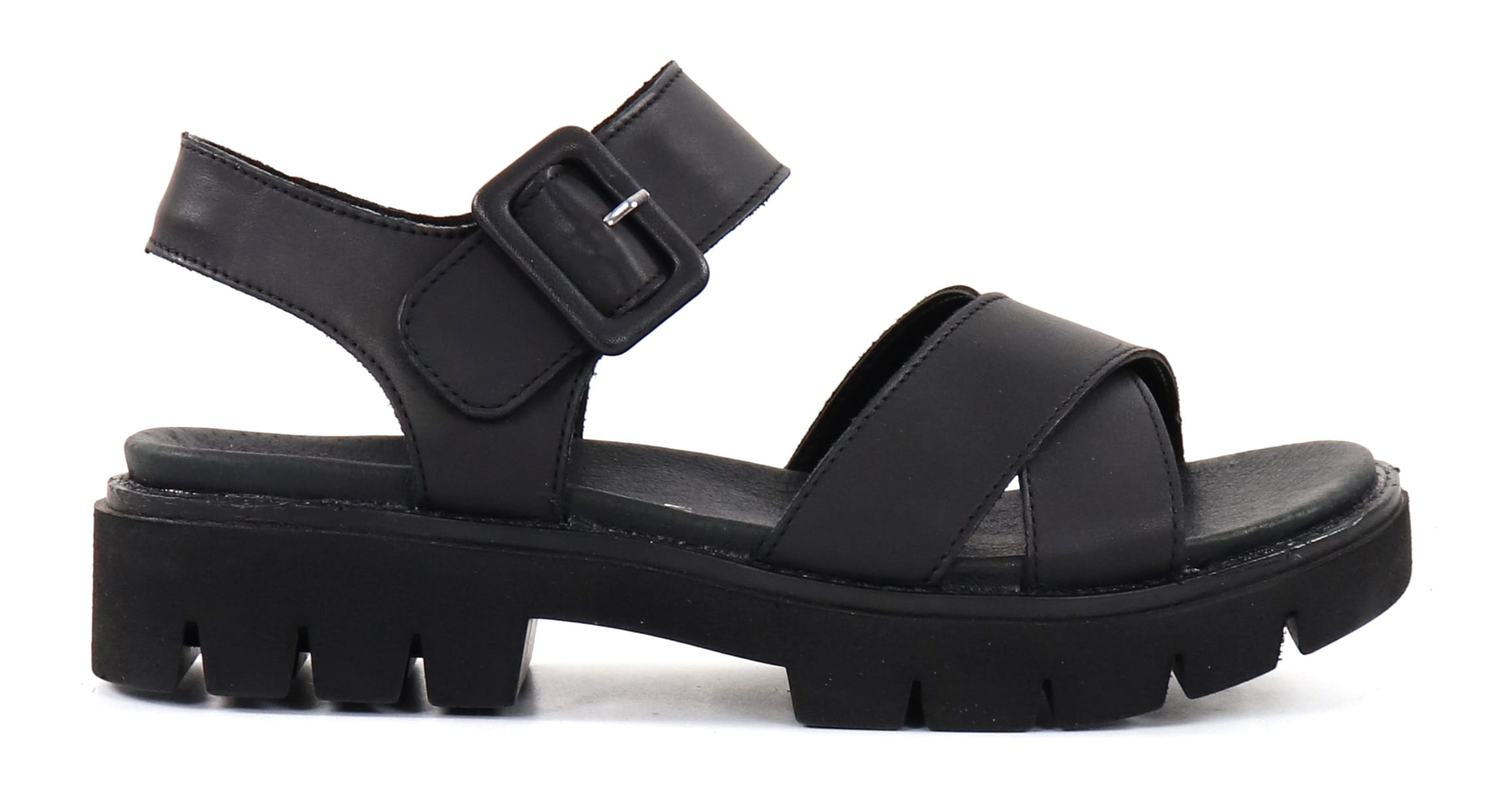 - Ankle strap with velcro fastening, decorative buckle on the top