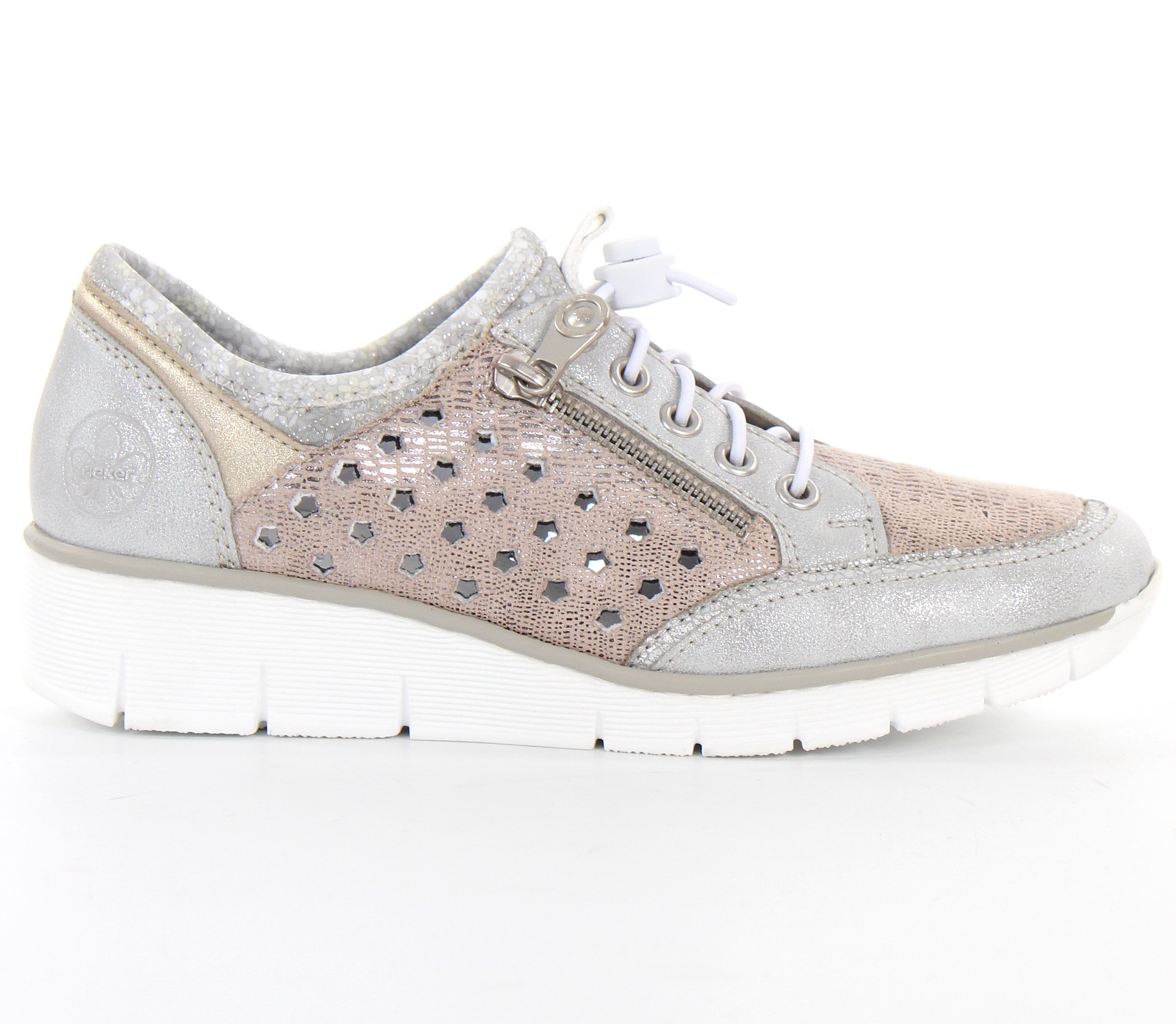 Rieker Walking Shoes 537T3-80, Silver/Rose