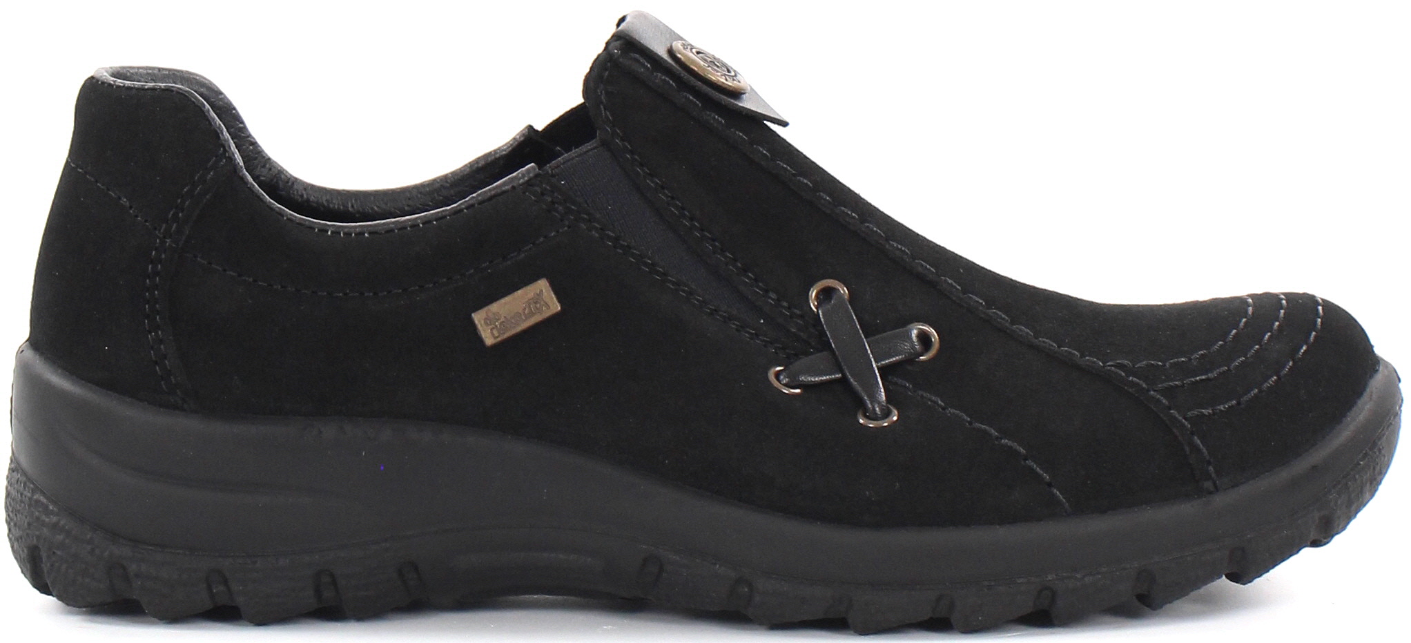 Leather walking shoes with water-resistant RiekerTEX -coating and decortive stitching.