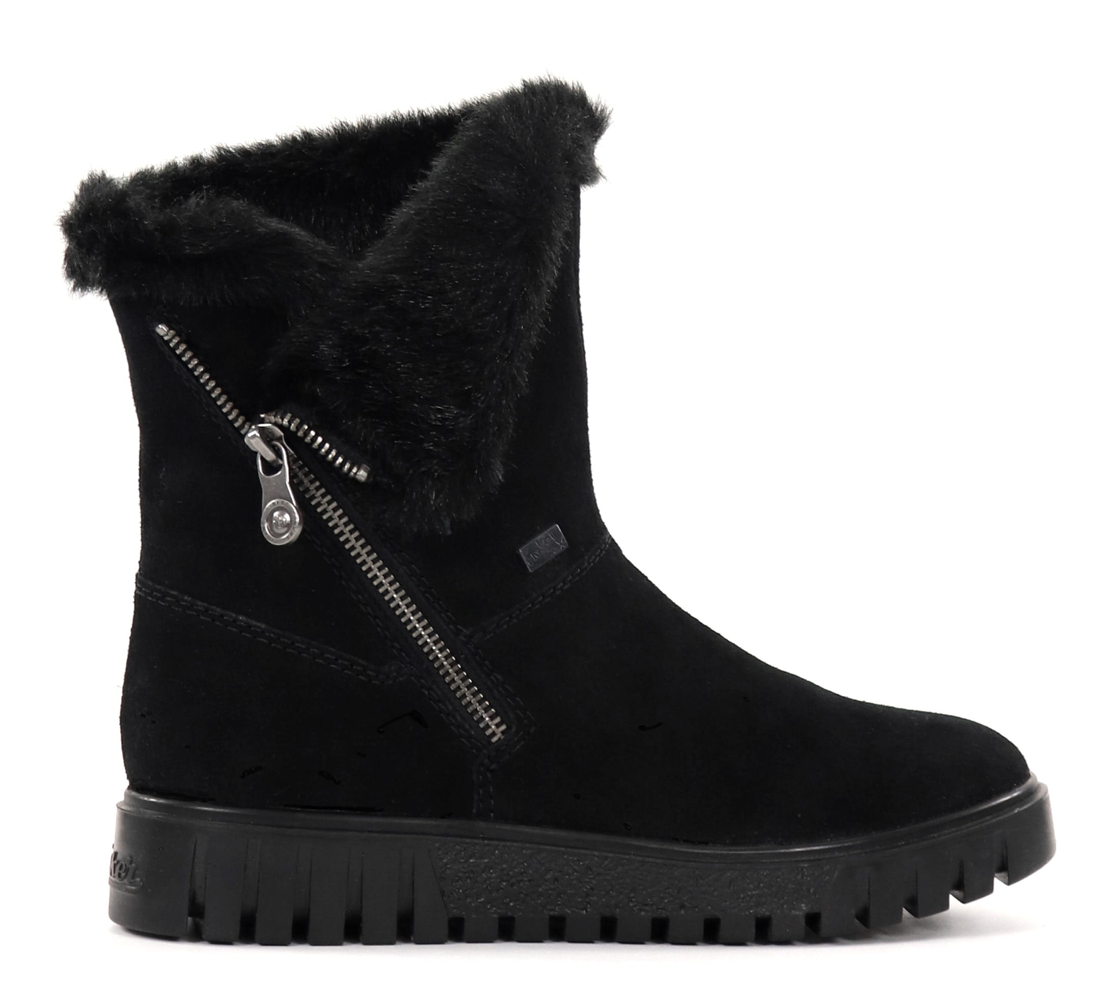 Ankle boots made of genuine suede leather, with water and wind-resistant surface thanks to the RiekerTex membrane.