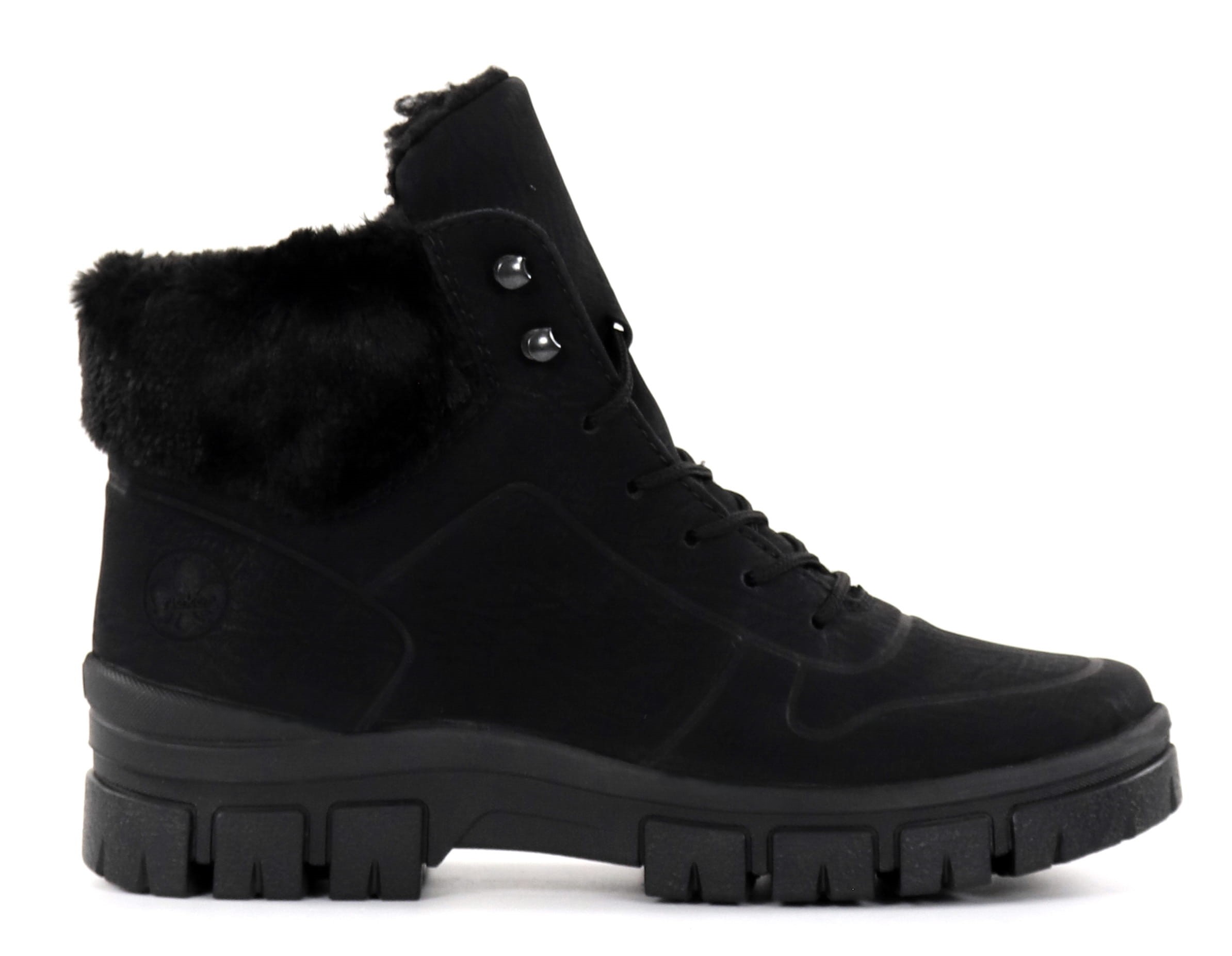 Black ankle boots with zipper and lacing. The shoes have a soft teddy lining and a warm felt insole!