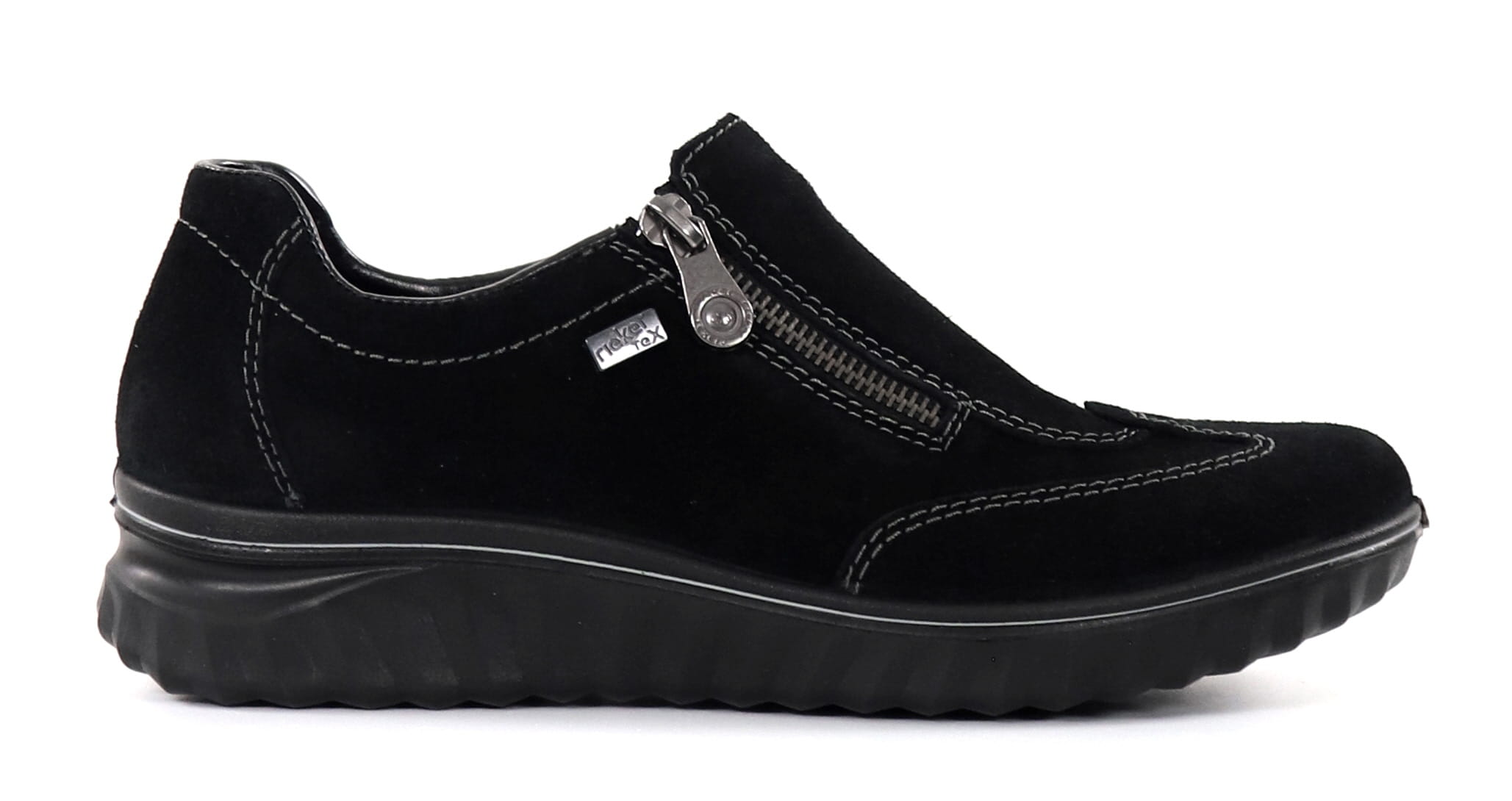 Rieker's genuine leather walking shoes, which are easy to put on thanks to the zipper and the elastic gusset on the side. Thanks to the water-repellent RiekerTex membrane, the shoes are well suited to the changing weather of spring and autumn!