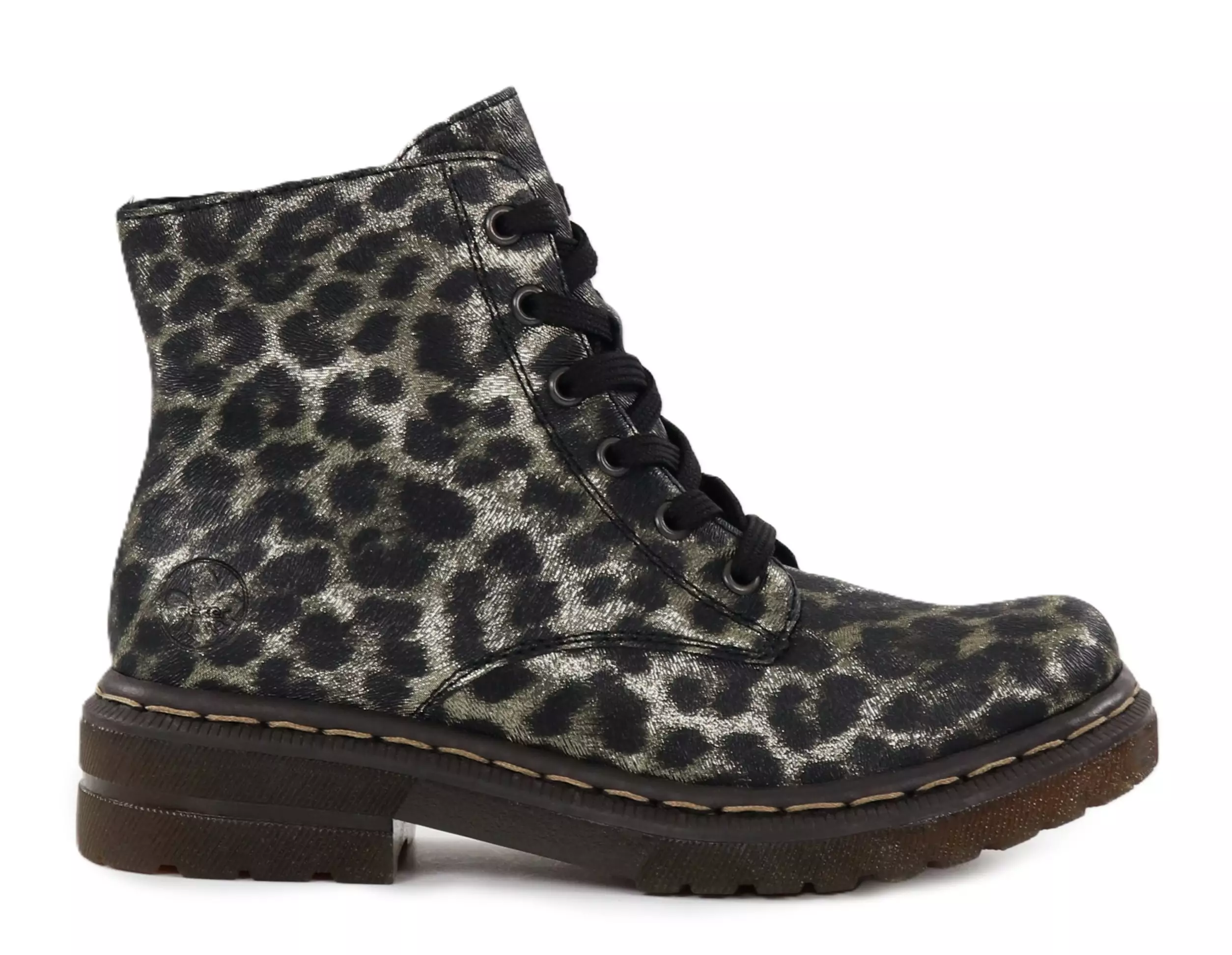 A bold leopard print meets a practical loafer style! These Rieker ankle boots have a soft and lightweight faux fur lining, which brings comfort on cool days. The zipper on the innerside makes putting the shoes on quick and easy.
