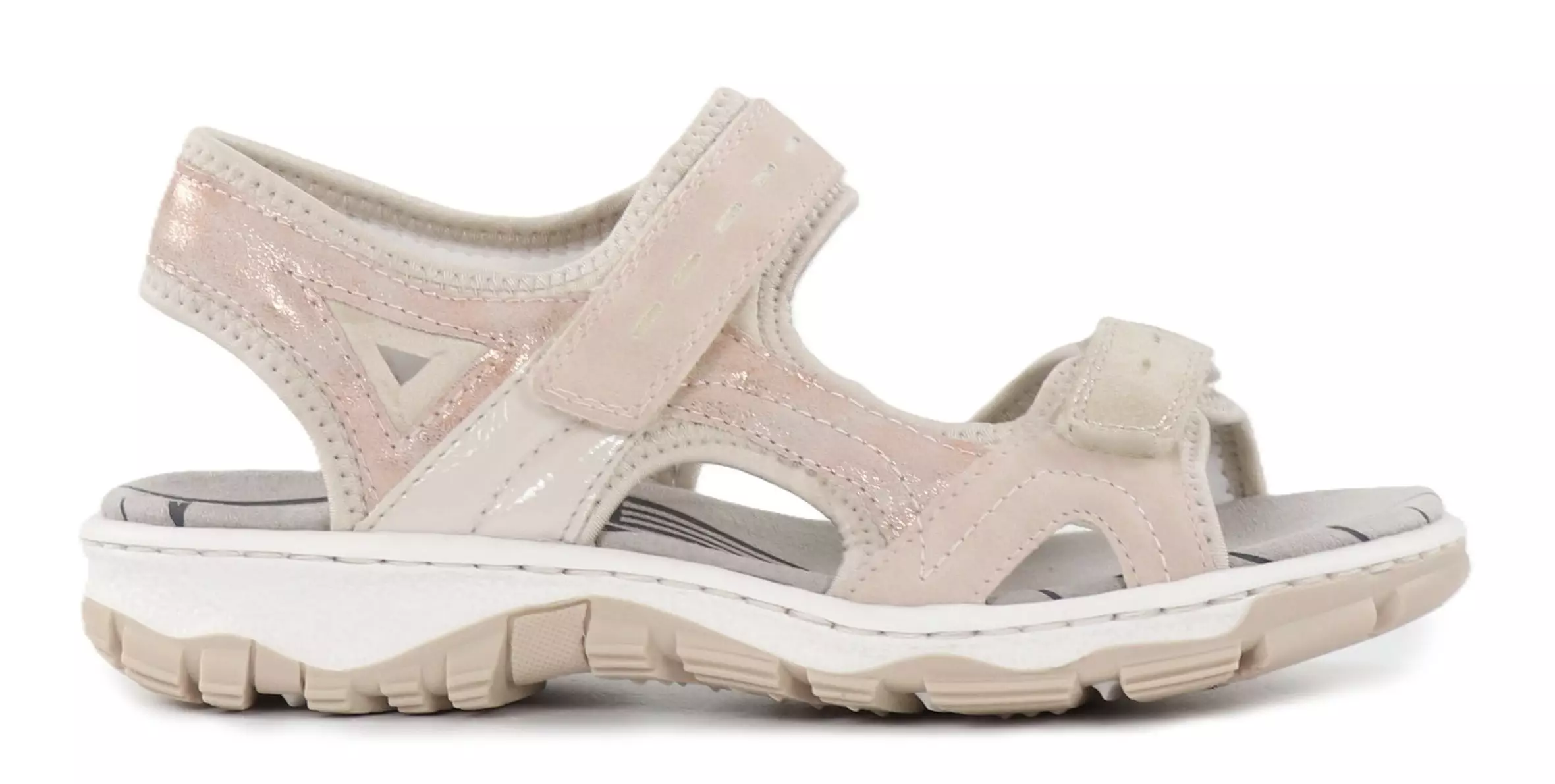 Really comfortable sandals from Rieker with adjustable velcro straps that ensure the shoes fit perfectly! The upper is a beautiful pink/nude shade and has rose gold glitter.