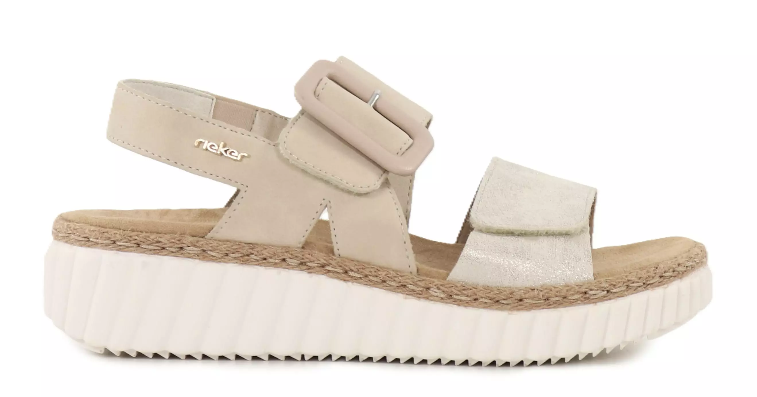 Women's beige sandals, with Velcro straps that make them easy and quick to put on.