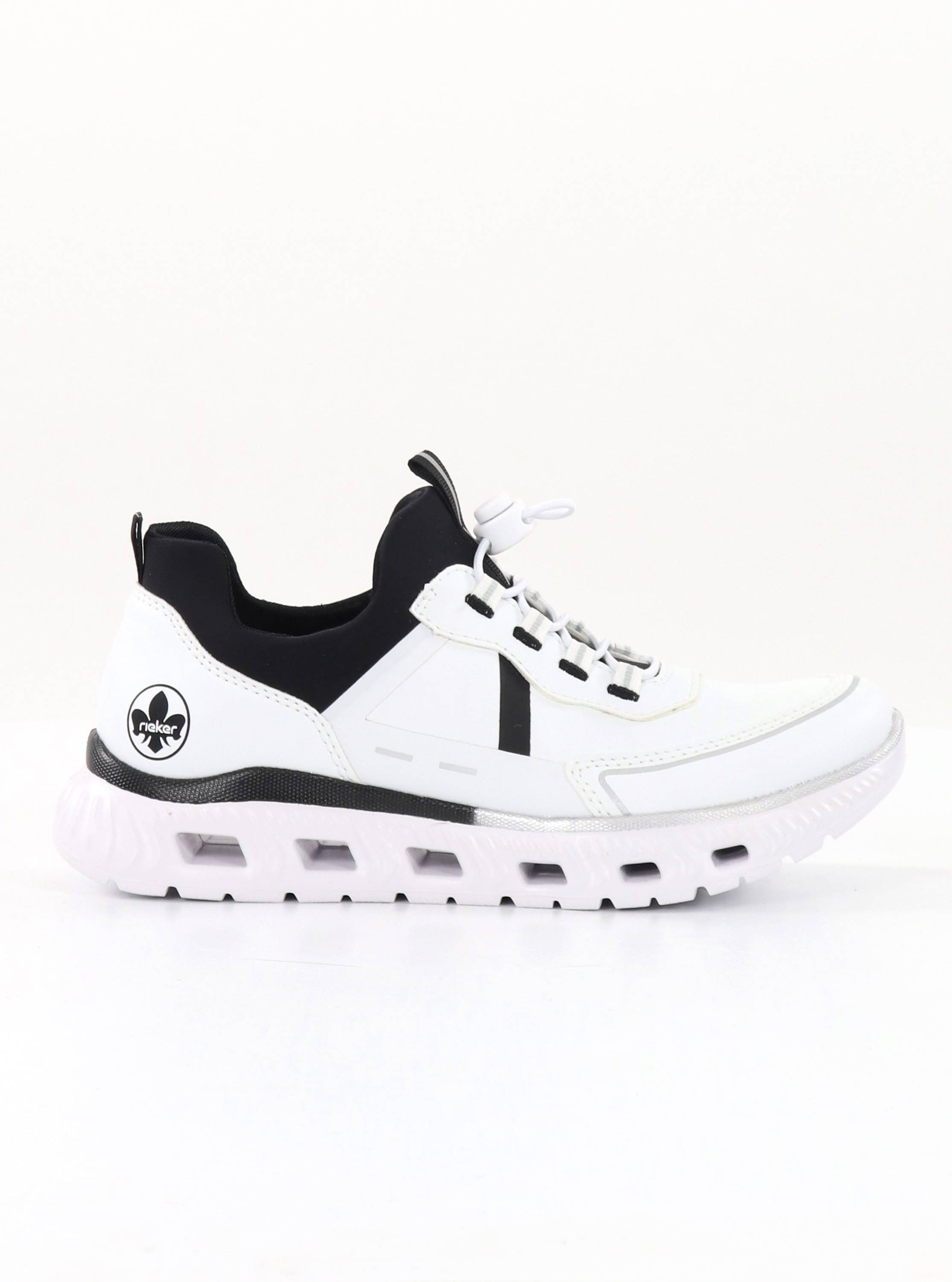 Sporty white sneakers from Rieker. The MemoSoft insole that molds to the foot completes the comfort. An excellent choice for active movement and leisure time.