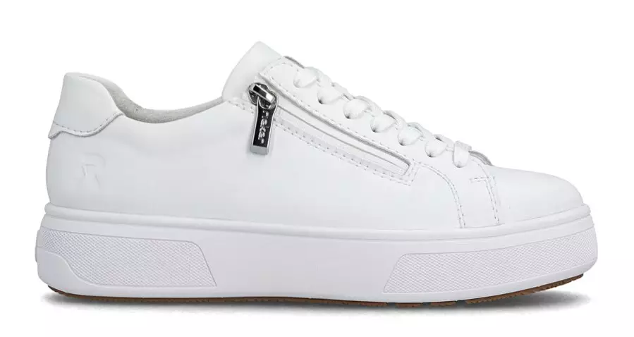 Stylish white thick-soled sneakers that offer excellent comfort for everyday life! Removable Rieker Soft insoles add softness and stability, a side zipper makes it easy to put on and lacing ensures a good fit. The perfect combination of trendy look and practicality!