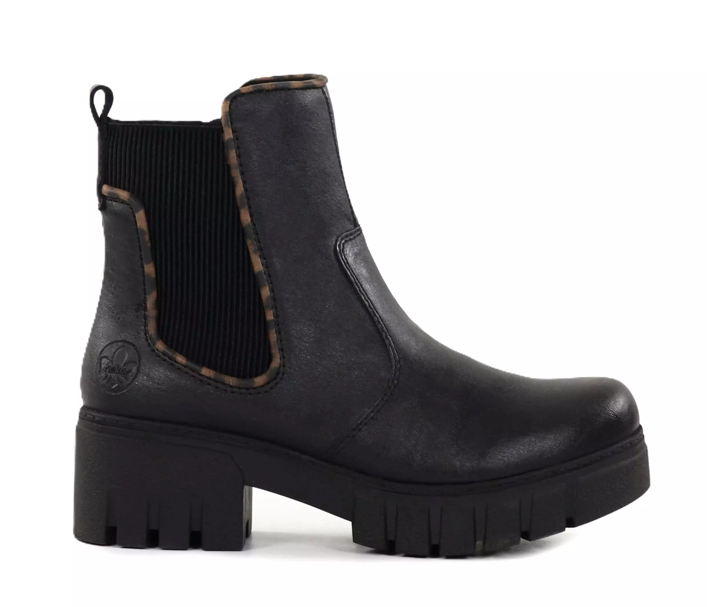 Rieker thick-soled ankle boots with removable insoles and stylish leopard details. The perfect choice for both everyday and leisure!