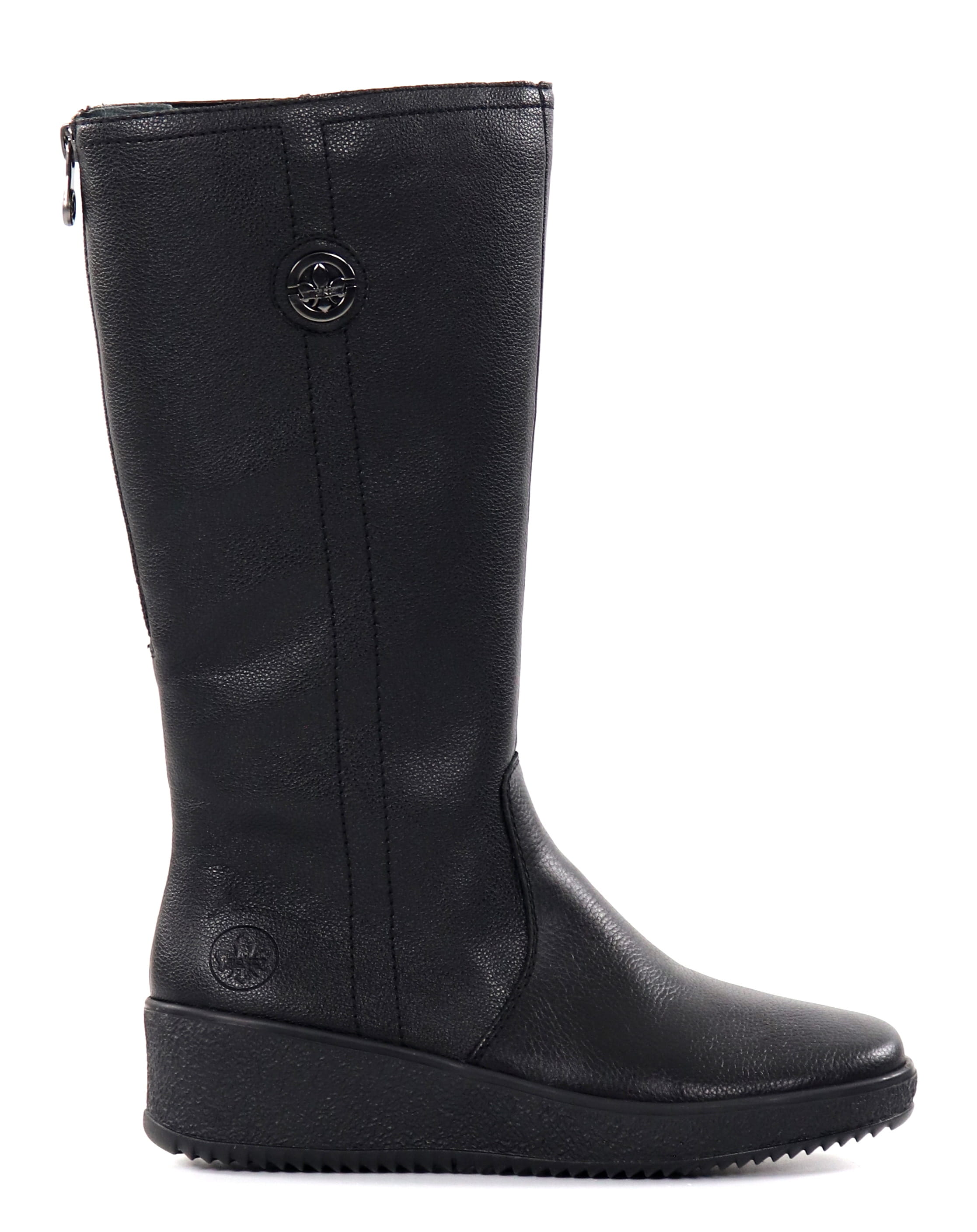 Rieker boots with a comfortable wedge sole and a warm lambswool lining. With the zippers on the back, you can easily adjust the width of the shaft.