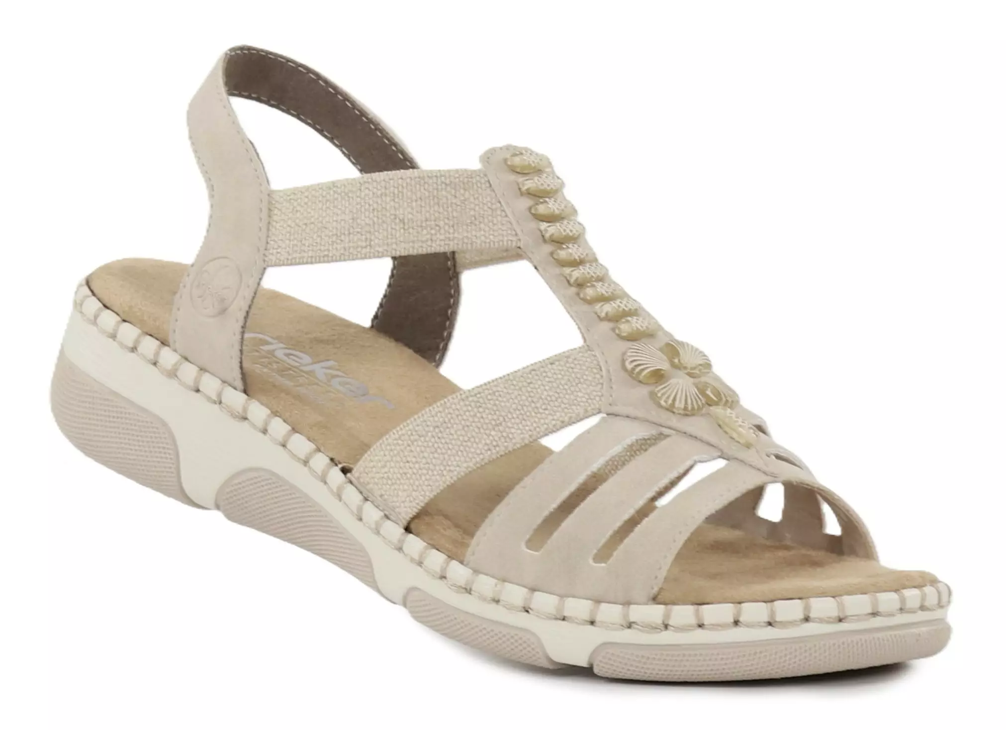 These wide-last beige sandals combine comfort and style perfectly! The elastic straps make putting them on easy, and the soft insole ensures a comfortable walk all day long.