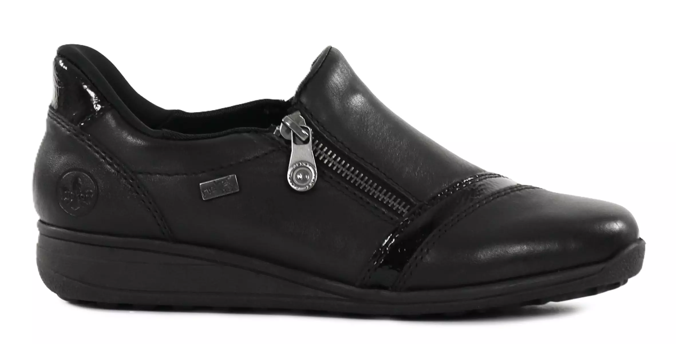 These Rieker shoes are designed for easy everyday wear: a wide last provides space and comfort, a zipper on the outer side makes it quick to put on and a Ready2Go heel construction completes the effortless use. The water-repellent RiekerTex membrane keeps your feet dry in changing weather, and removable insoles allow for individual customization.