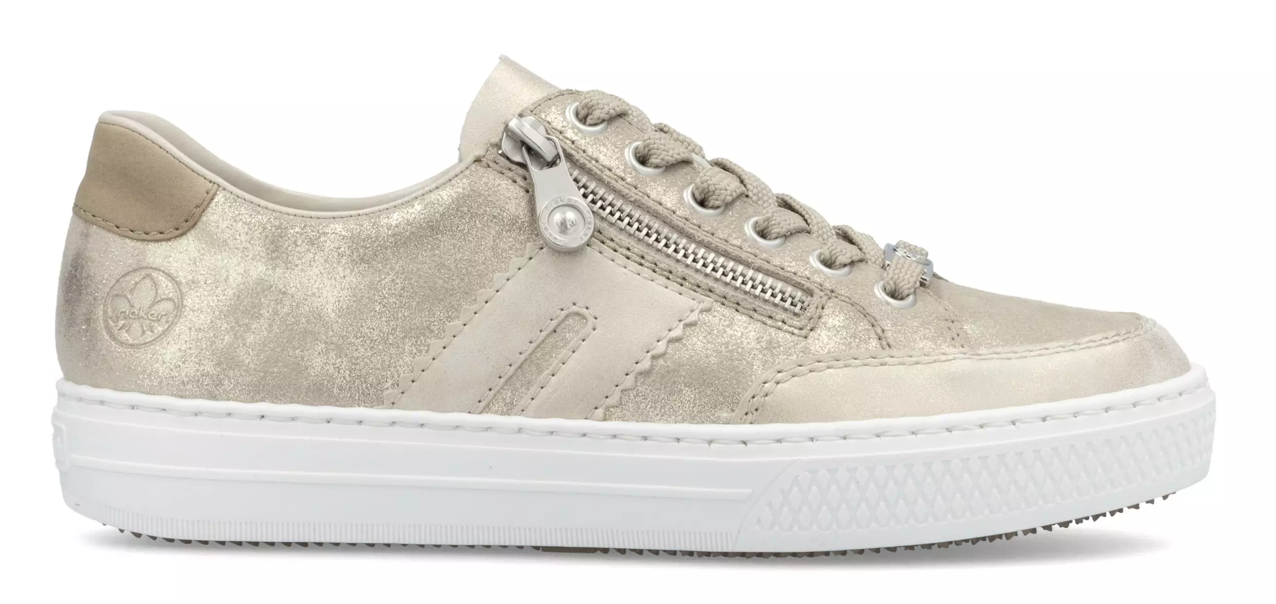 Gorgeous golden sneakers with a shaping Memosoft insole. The zipper on the outer side makes it easy to put on the shoes, and the lacing allows you to adjust the shoes to fit your feet.