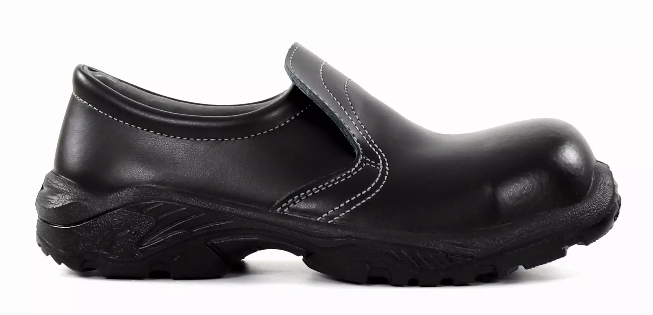 Leather safety shoes. Work shoes are resistant to oil and many chemicals. Water repellent. Aluminum toe cap protects toes from falling objects and crushing. ESD footwear discharges static electricity accumulated in the body in a controlled and safe way through the sole structure.