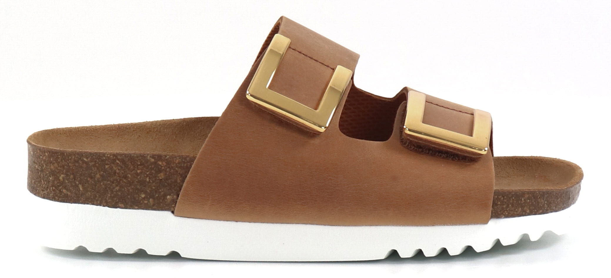 Leather mules shaped to fit the foot with velcro straps. Bioprint insole with a comfortable foot arch and heel cup.