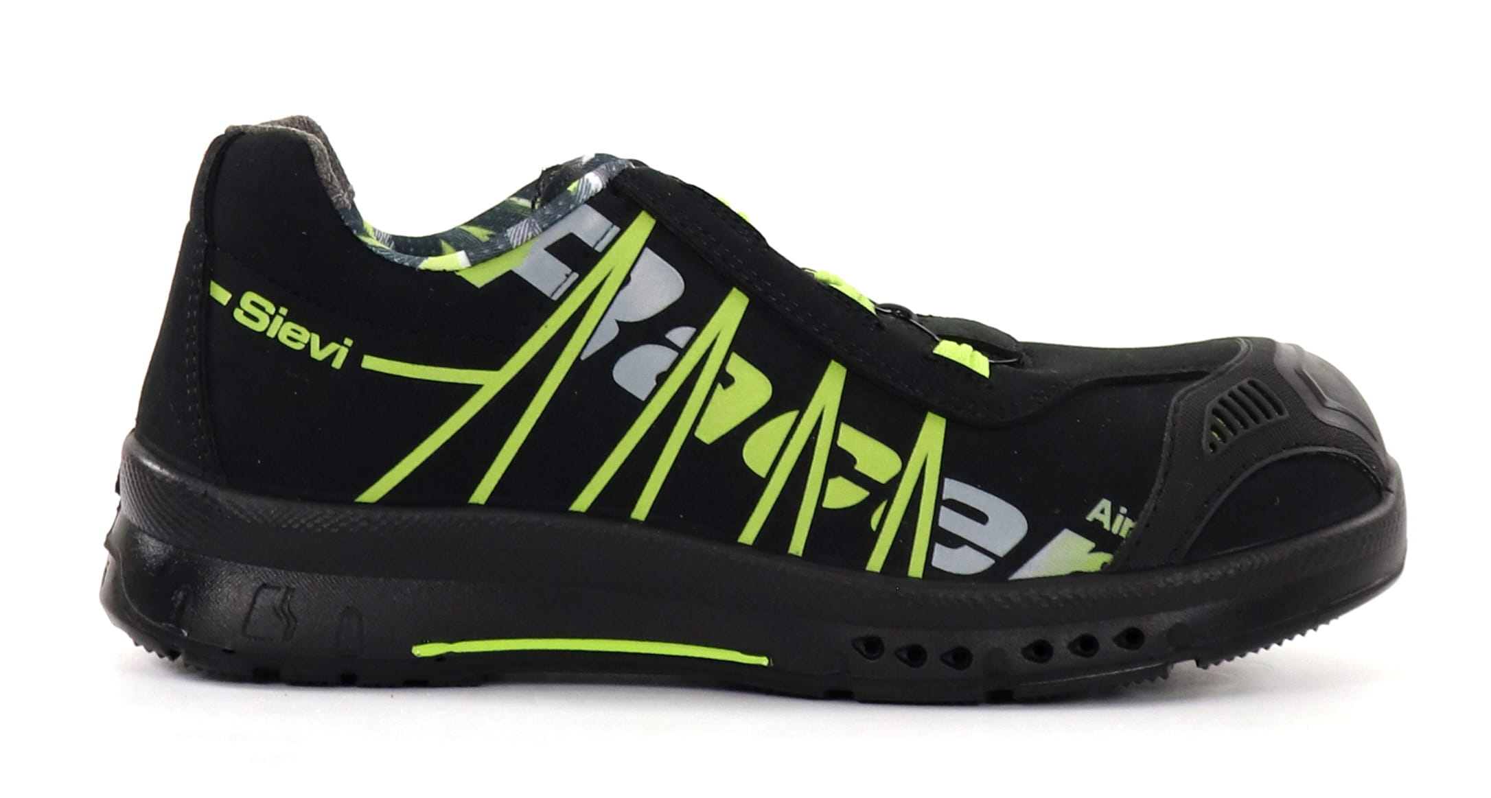 Safety shoes with S3 class protection, SieviAir® sole solution, Boa® mechanism, steel nail protection and aluminum toe protection.