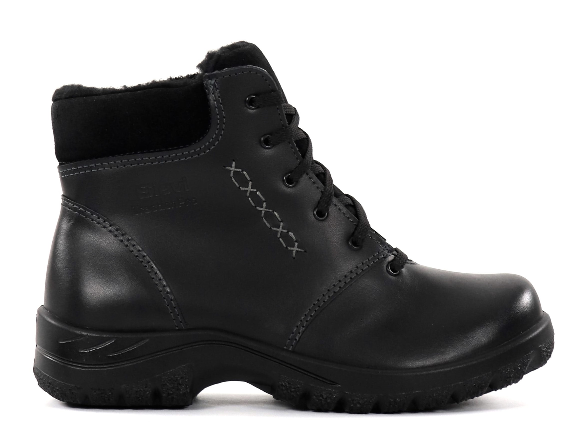 Warm wool-lined leather ankle boots with zipper and lacing. Wide XL last!