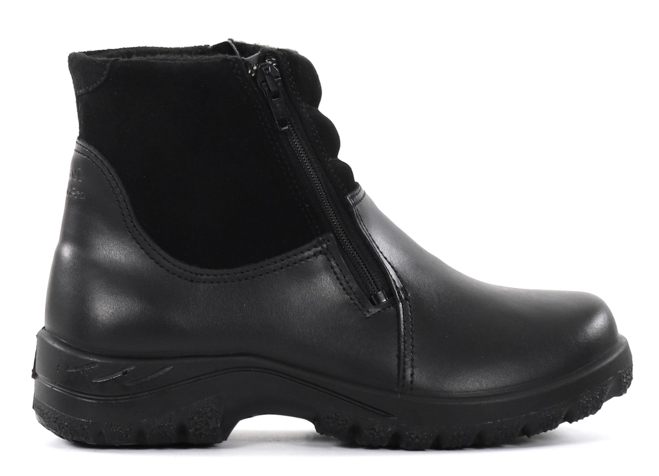 Leather ankle boots with zippers, grippy friction sole and warm felt lining.