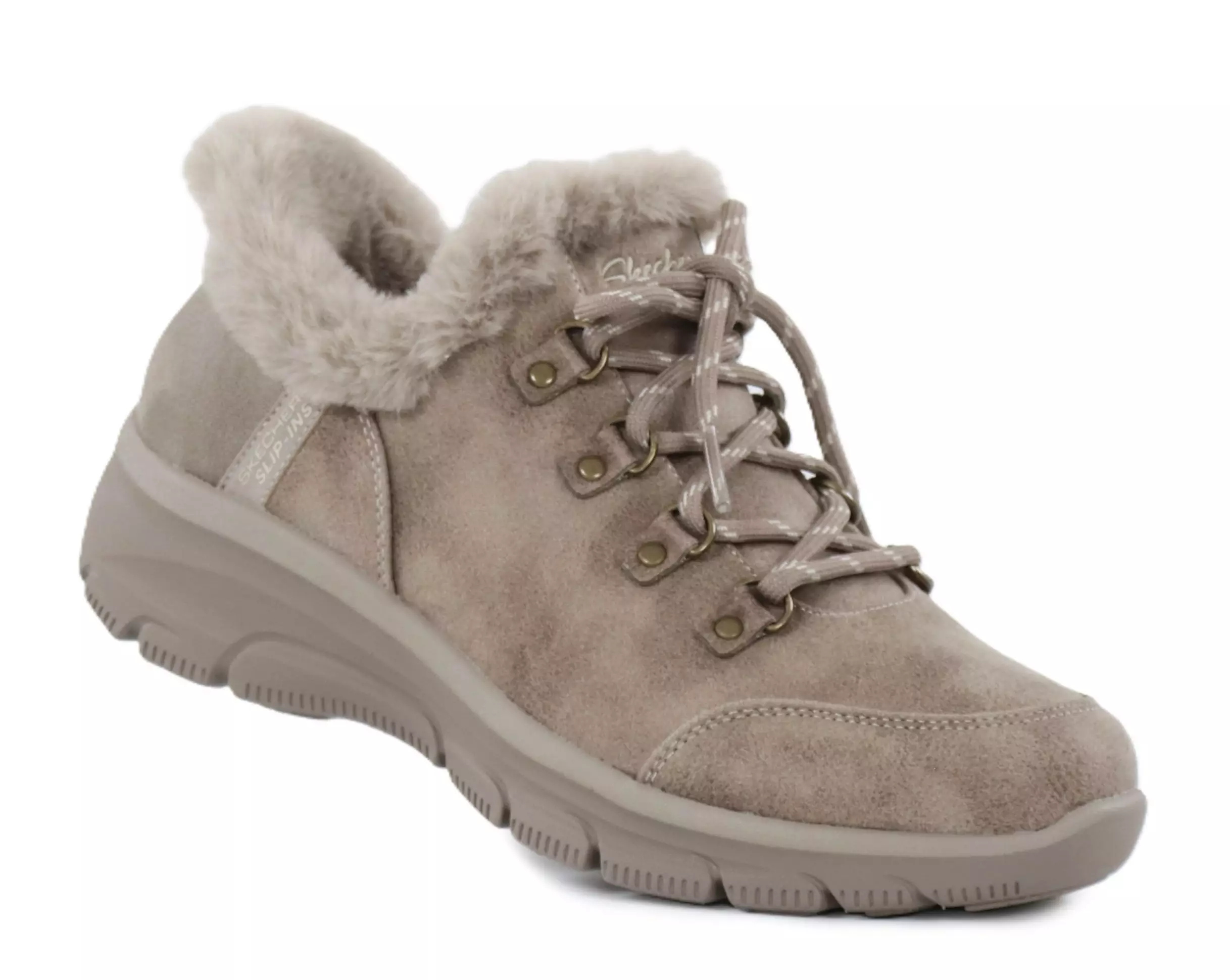 Easy-to-use Skechers ankle boots with a Slip-ins model and Heel Pillow cushioning make them effortless to put on. The water-repellent 3M Scotchgard treated upper, warm faux fur lining and Air-Cooled Memory Foam insole provide comfort and protection on cold days.
