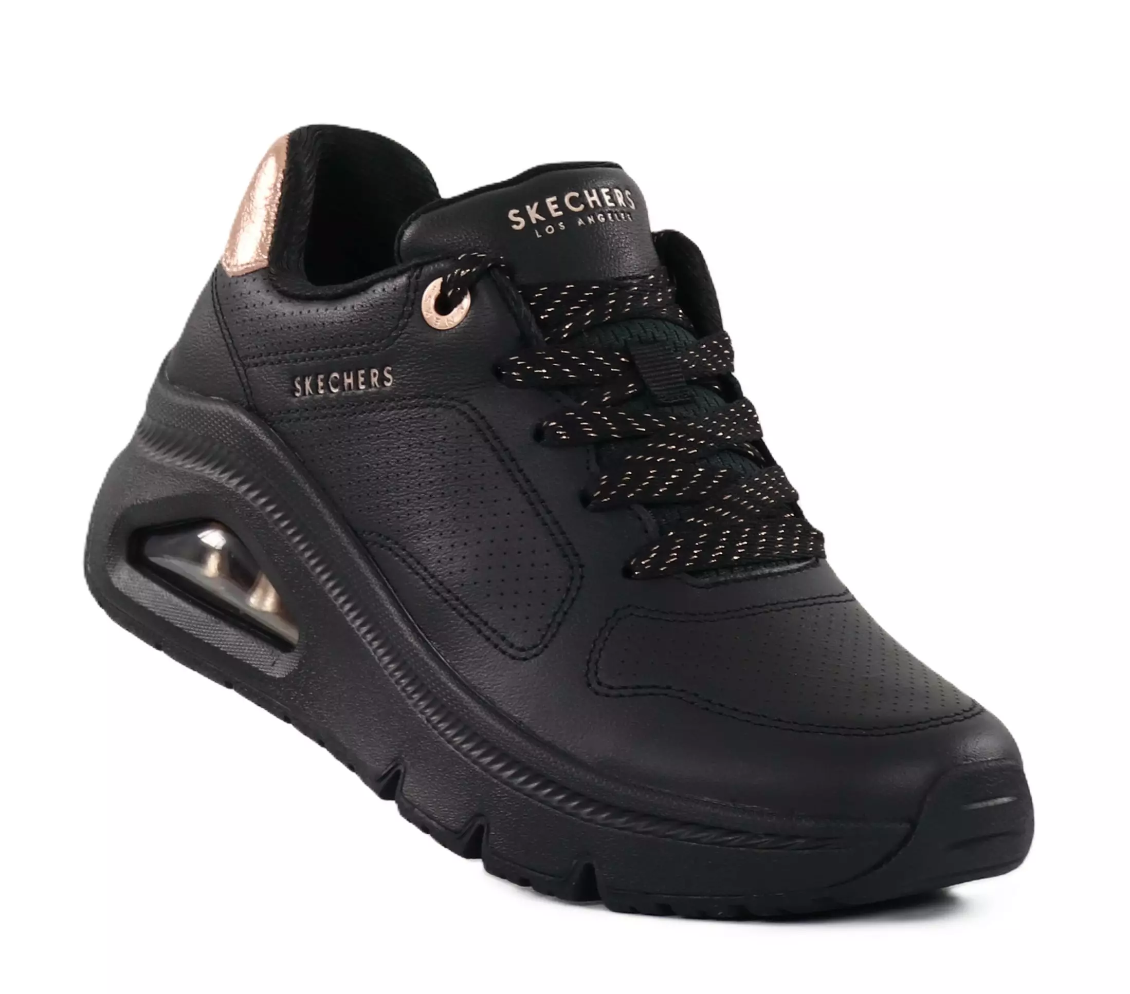 Take walking comfort to a new level with the Skechers Uno sneakers! Shock-absorbing Skech-Air air cushioning makes every step light and effortless - whether you're moving around town or on your feet all day. Stylish metallic details complete the modern look that stands out.