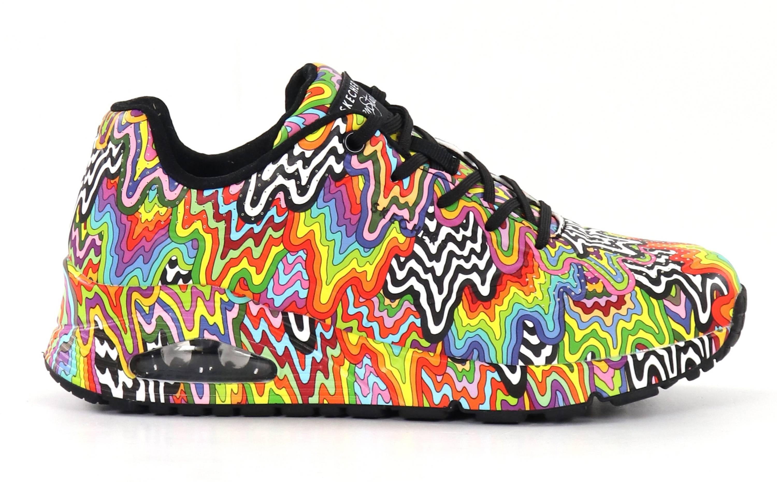 Enter the world of art with the Skechers Street x Jen Stark: Uno shoes! The shoes are part of the Skechers x Jen Stark collaboration collection, featuring the artist's iconic patterns and abstract illusions.