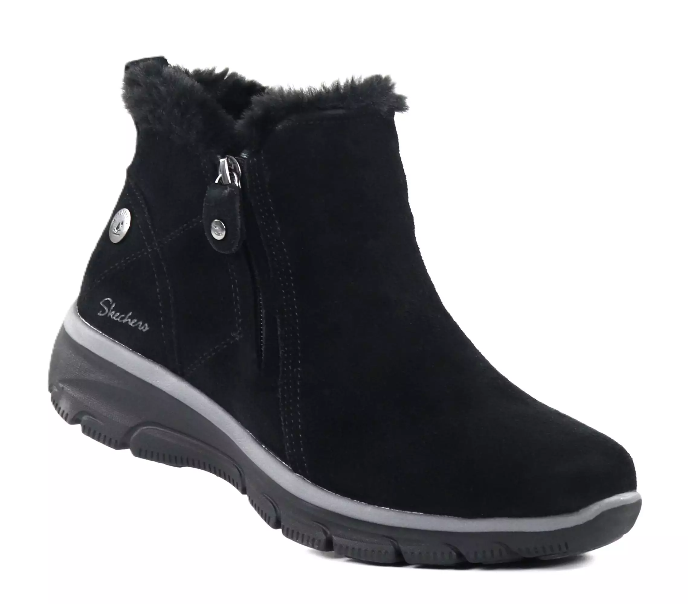 These Skechers ankle boots offer a sure step on slippery surfaces thanks to the Anti-slip soles! The waterproof material protects your feet from moisture, and the zipper on the outer side makes it easy to put on. The perfect choice for changeable weather.
