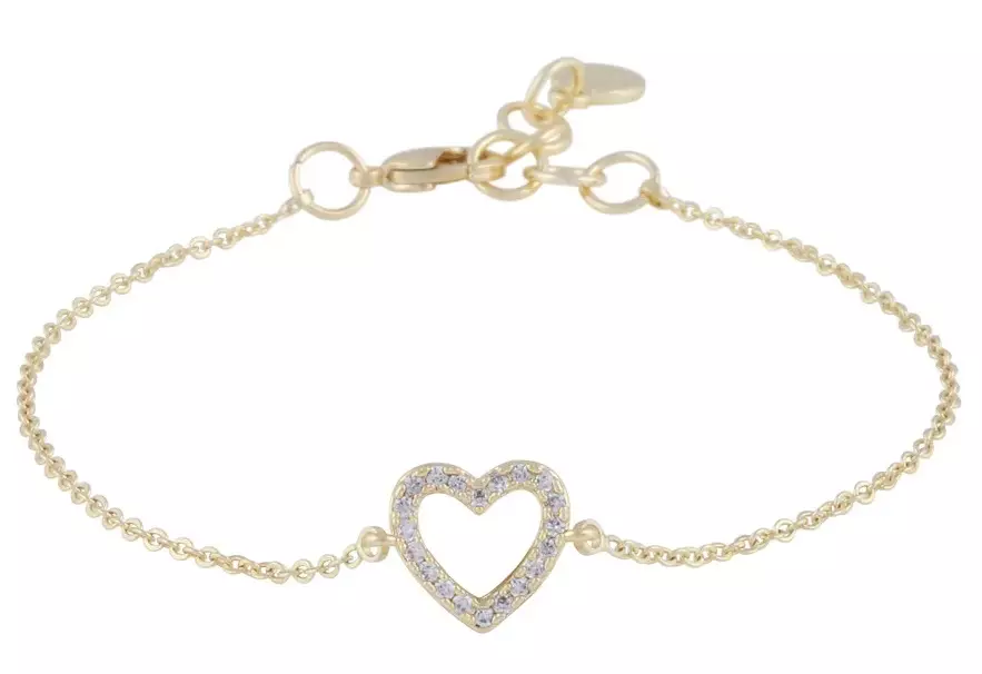 Beautiful bracelet with heart detail and clear gemstones, nickel tested.