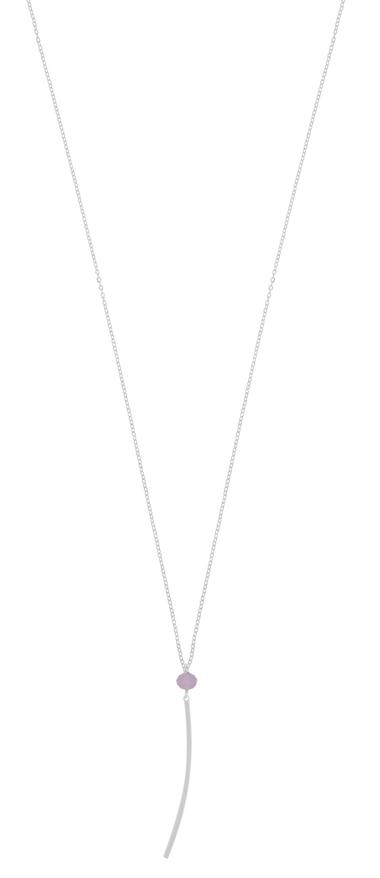 Beautiful necklace with a white or pink pearl and a narrow silver plate as a pendant.