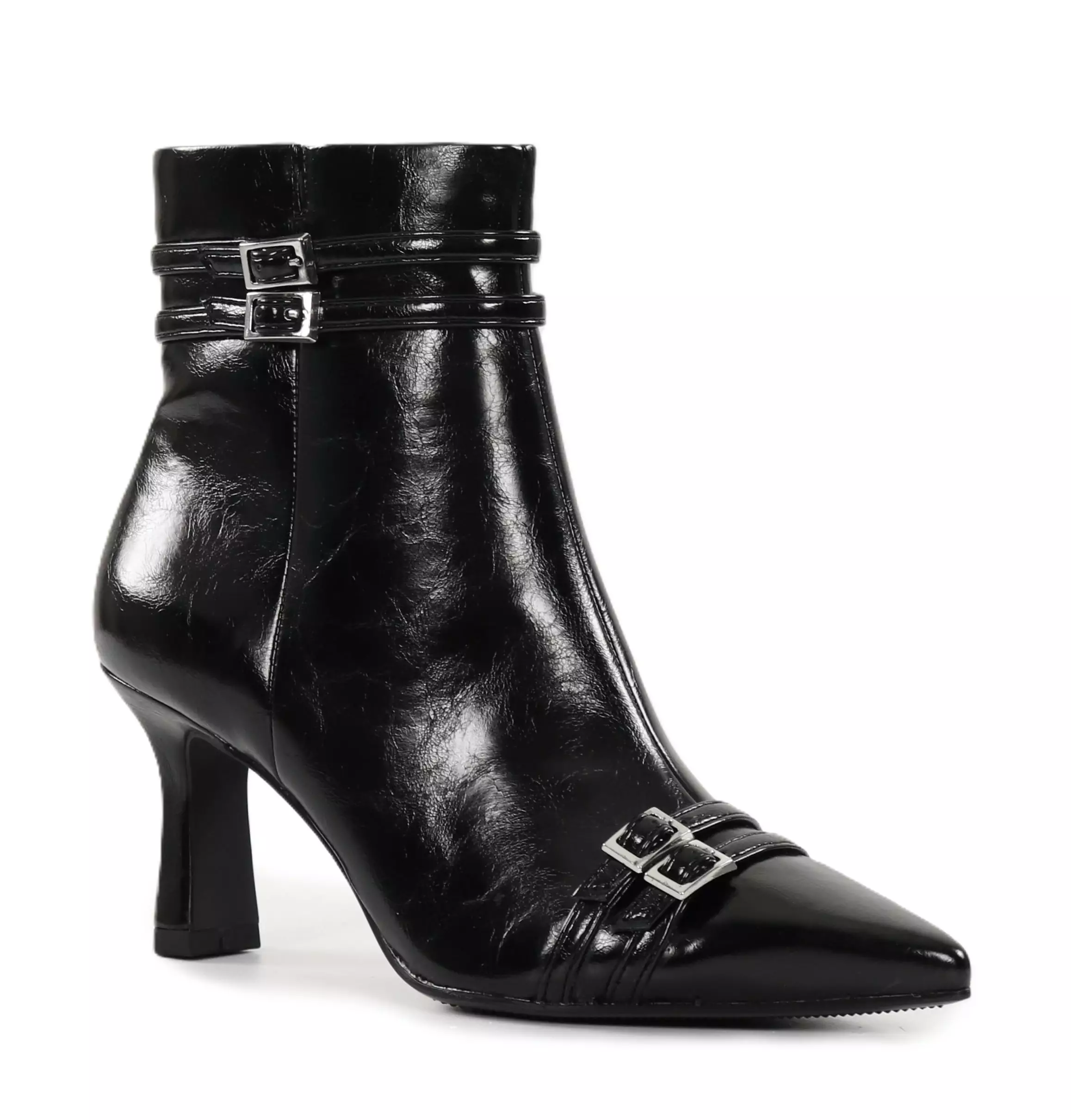 Bring a touch of boldness and style to your outfit with Tamaris' pointed-toe ankle boots, whose striking buckle details finish off the look in style!