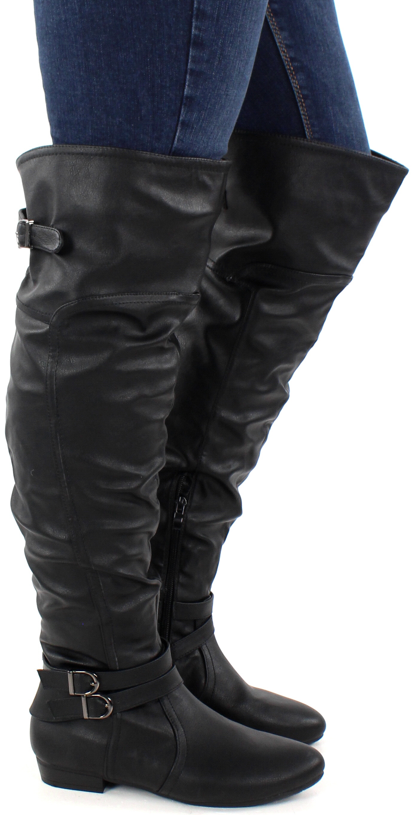 Thigh high boots from Tapas made of synthetic material with decorative buckle