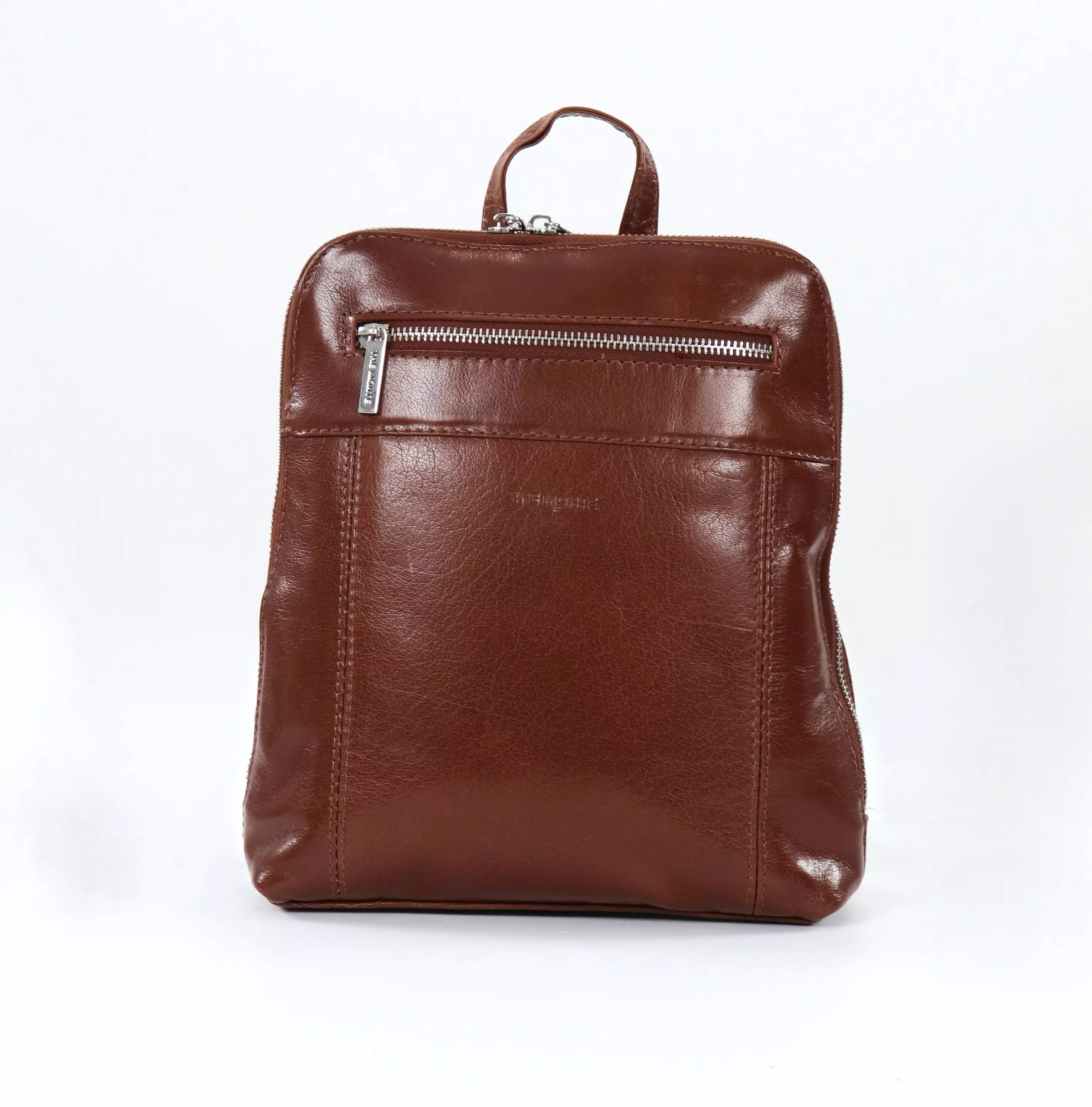 A genuine leather backpack with several different pockets to keep your belongings organized.