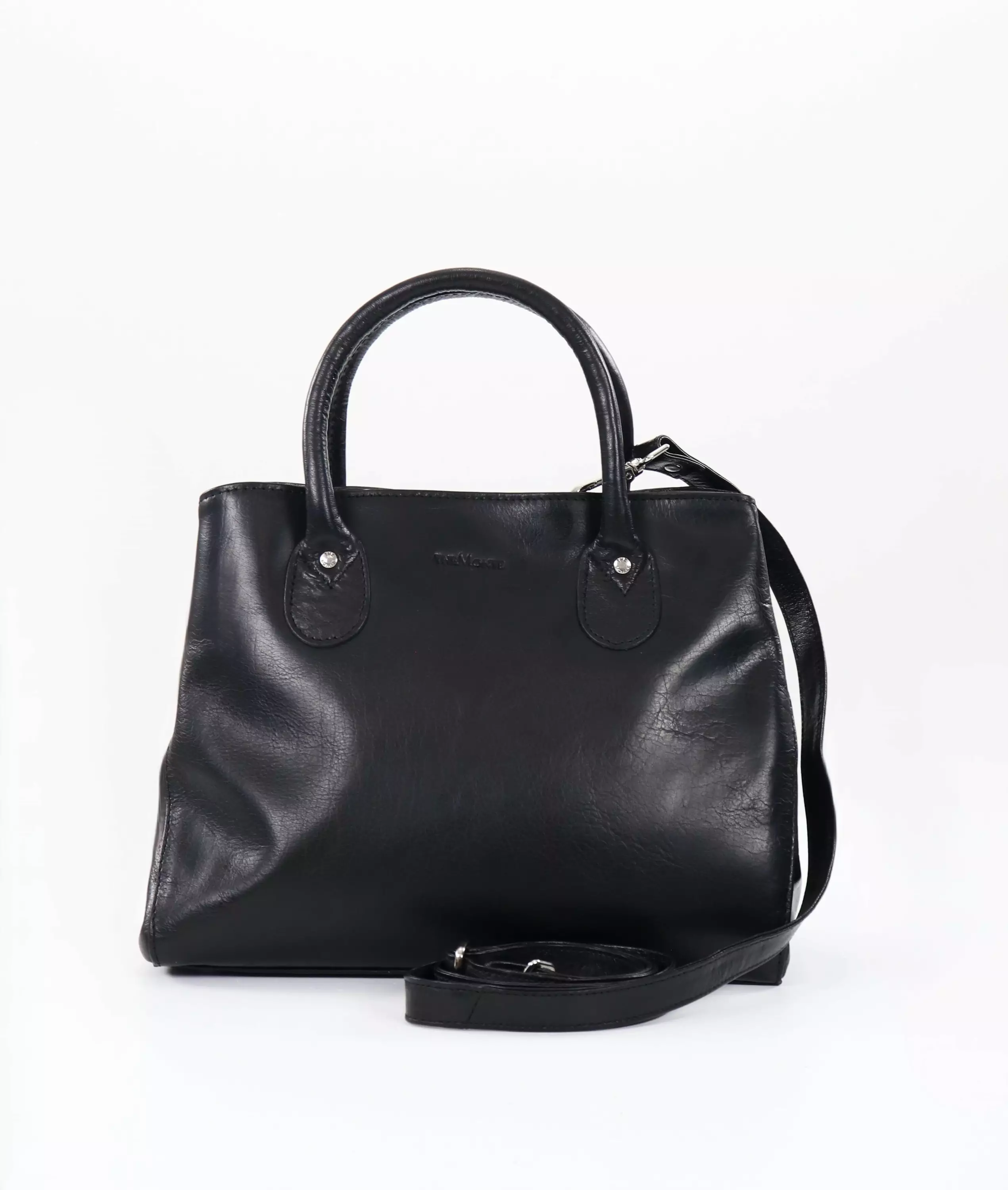 Stylish genuine leather bag with removable and adjustable shoulder strap.