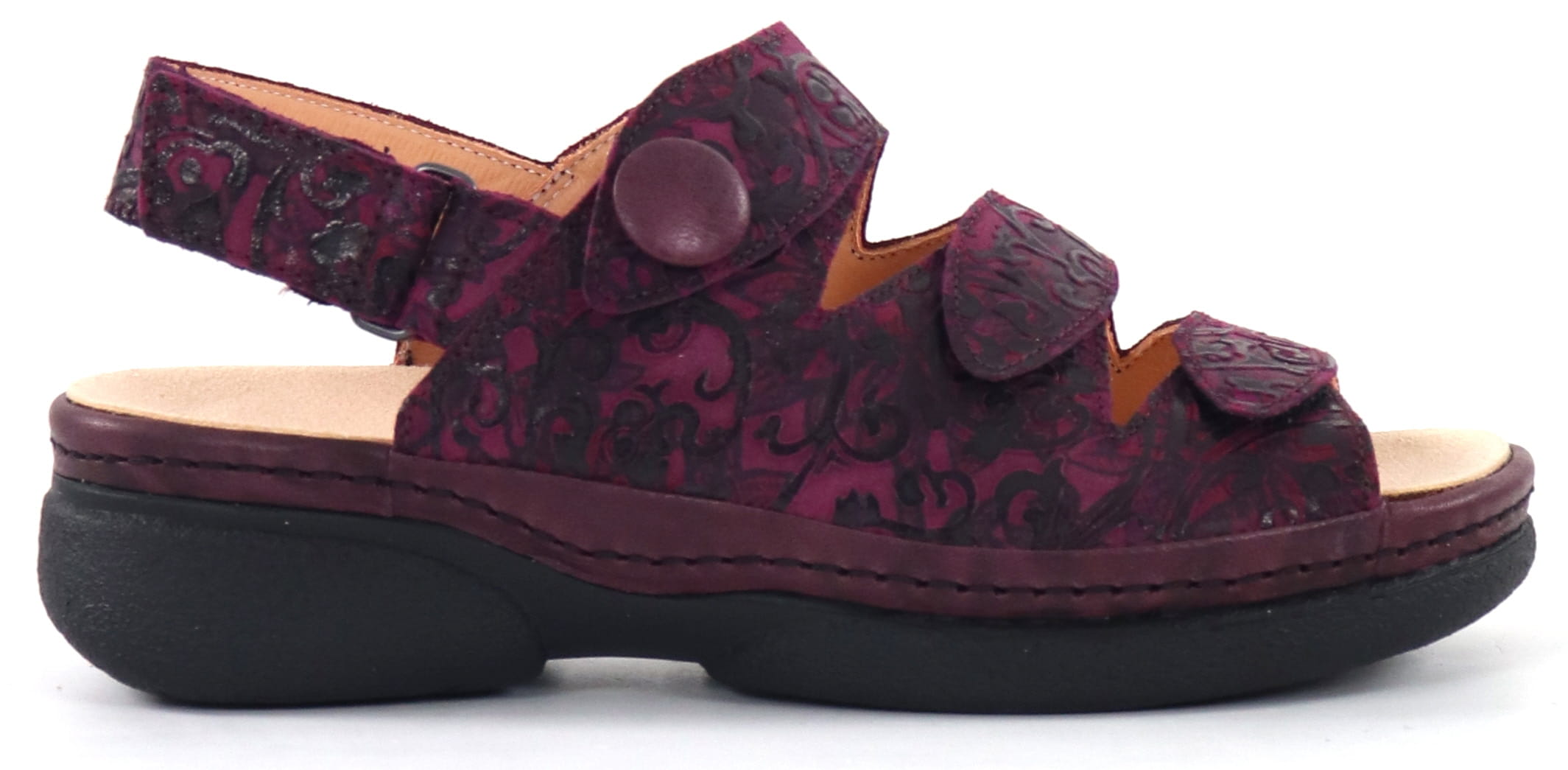 Work sandals with really good adjustment options, three velcro straps on the front, also an adjustment strap at the back. Removable leather insole. Beautiful textured leather coloring.
