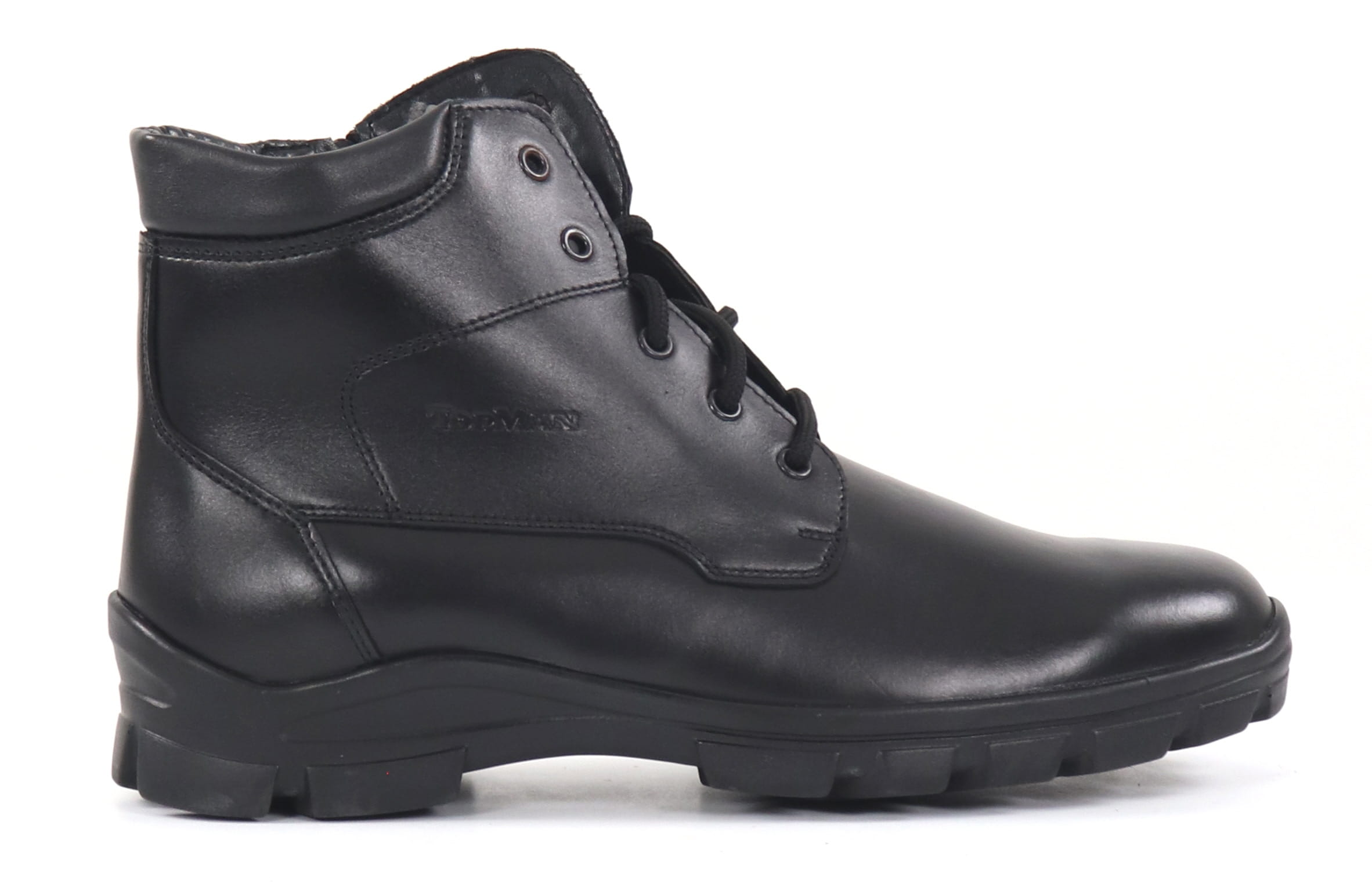 Leather ankle boots with elastic friction soles and warm wool lining.