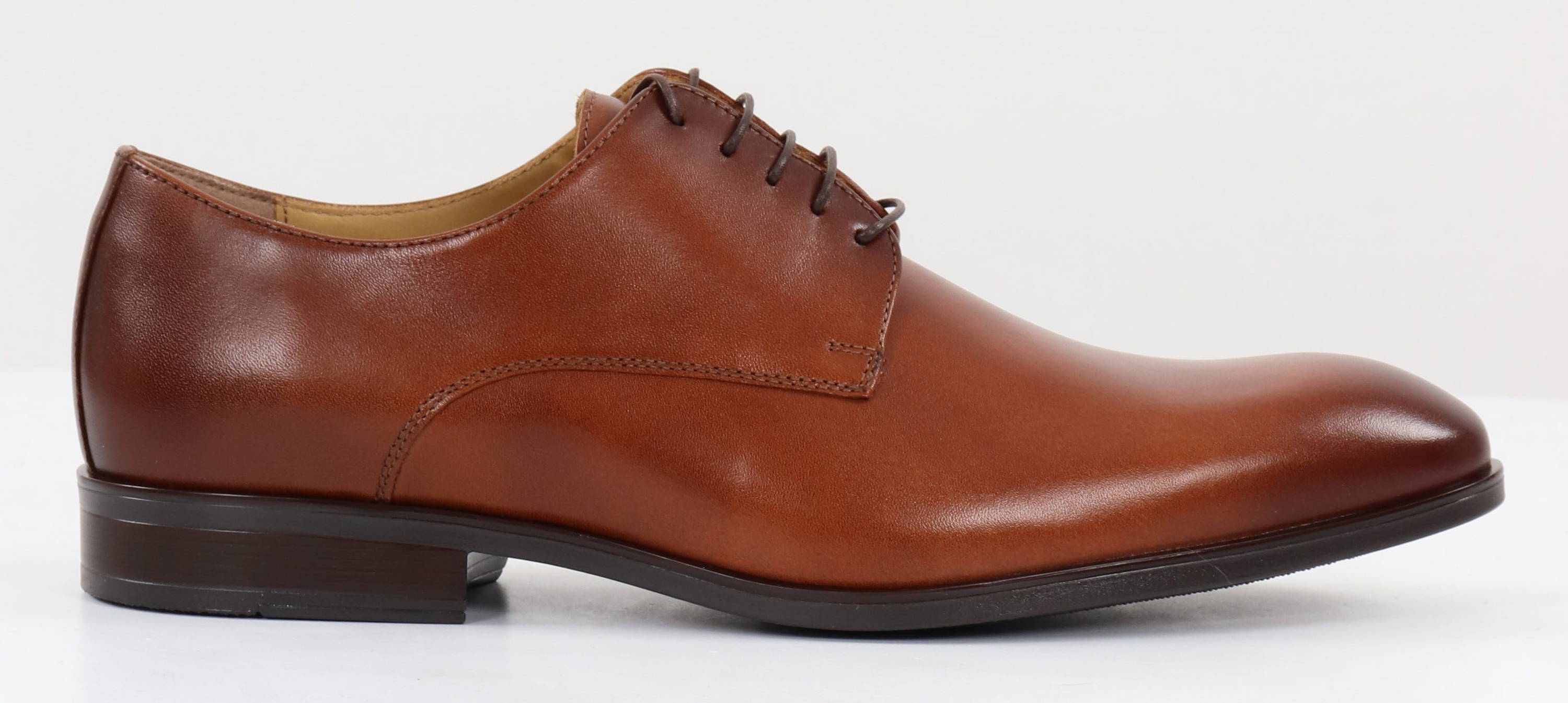 Stylish leather dress shoes with wide lasts.