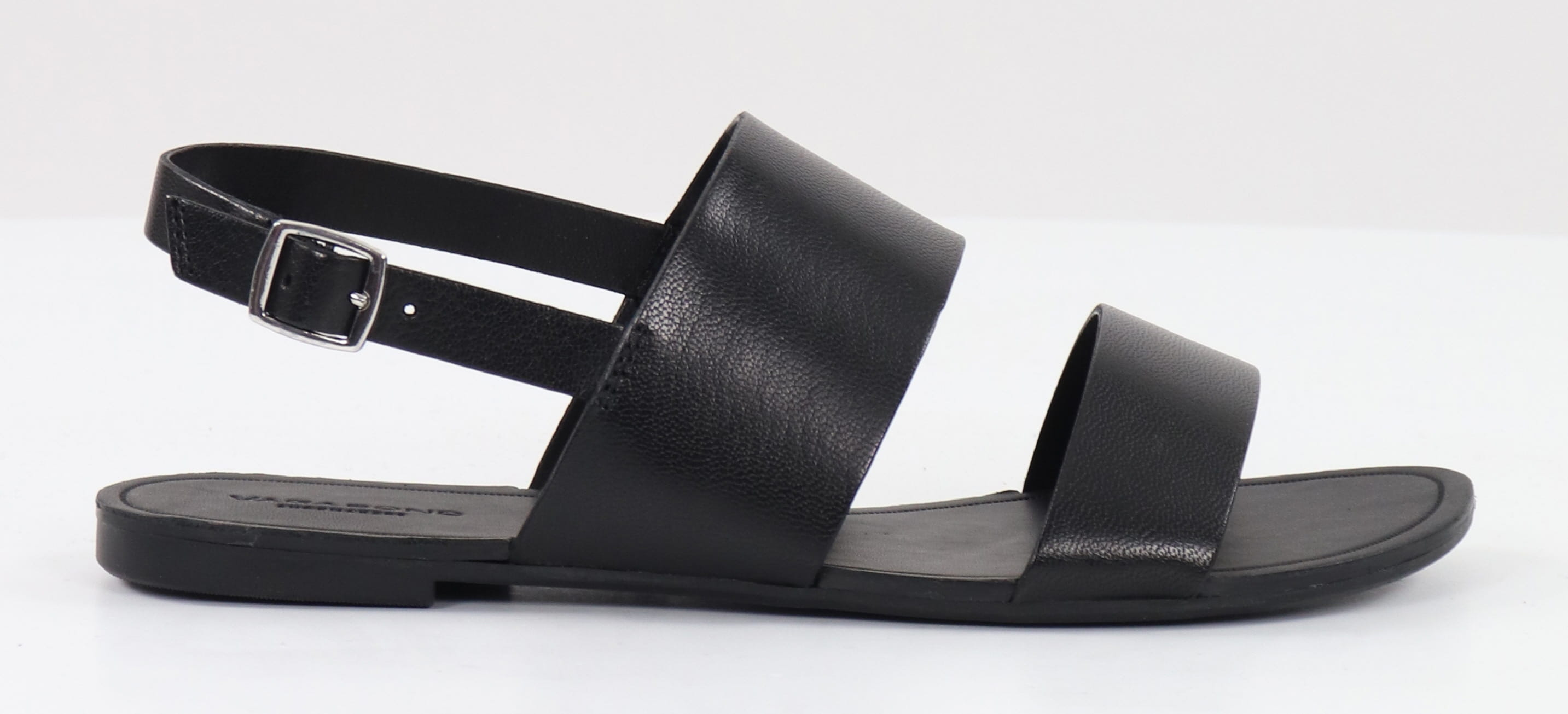 Classical leather sandals, wide straps on the top and adjustable heel strap with buckle.