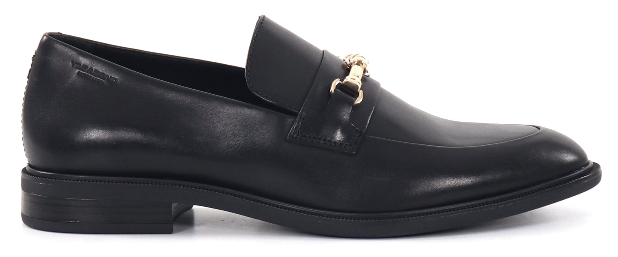 Leather loafers with a gold-colored decorative buckle.