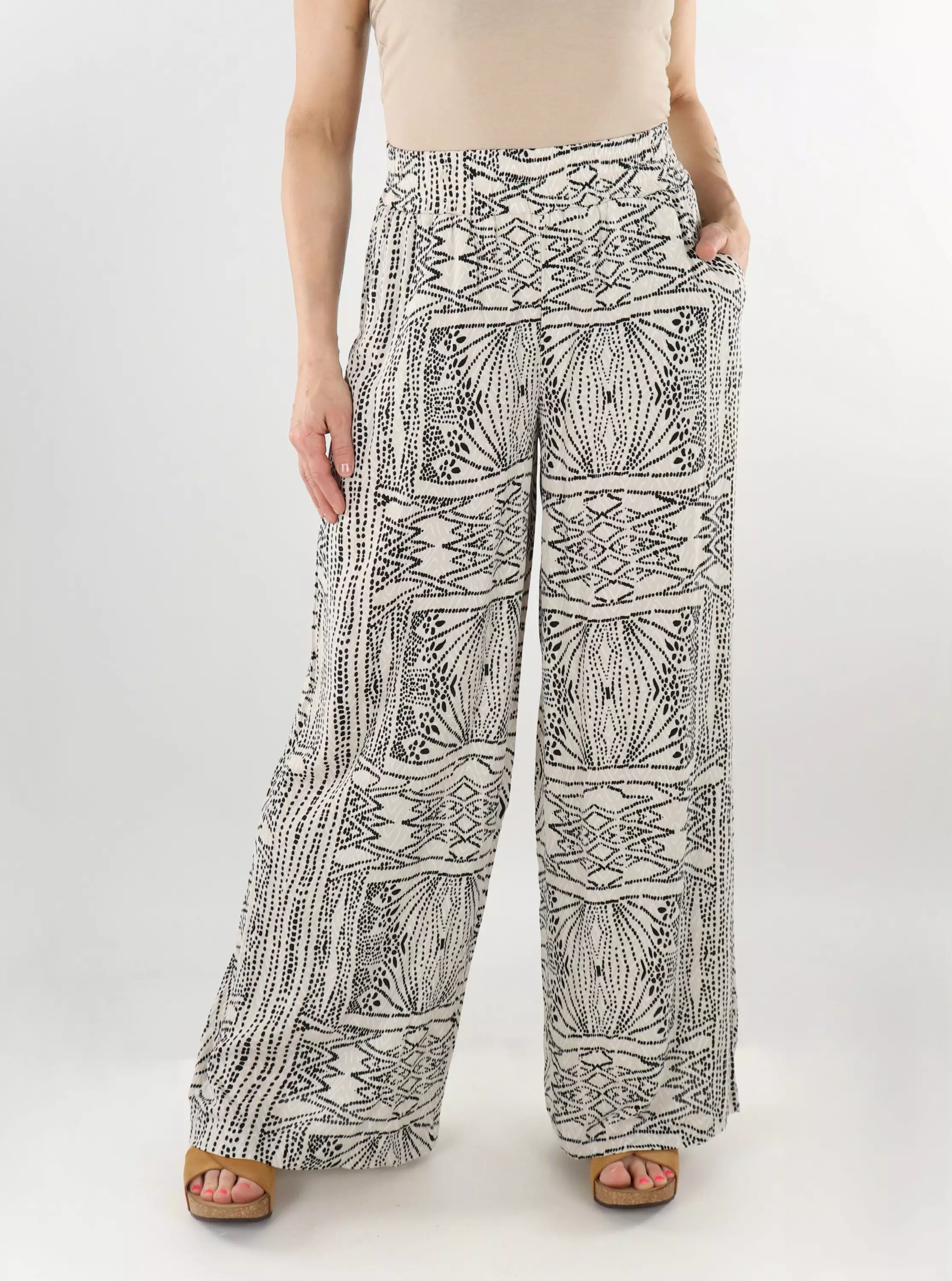 Pants made of lightweight viscose that feel comfortable against the skin. The elastic waistband and high waist ensure an excellent fit. The perfect choice for casual, stylish everyday wear!