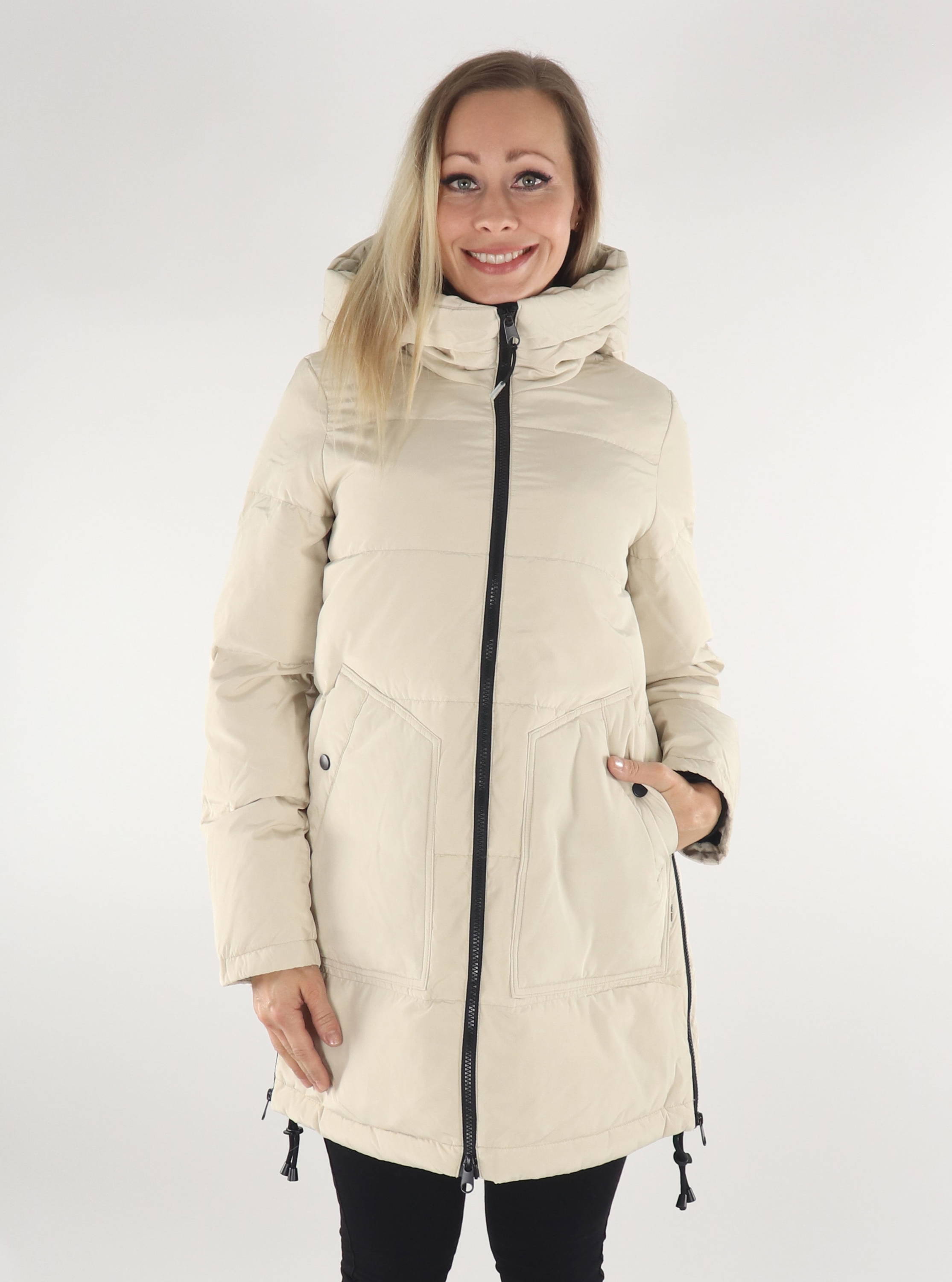 A warm and practical down coat with zippered slits on the sides for easy movement.
