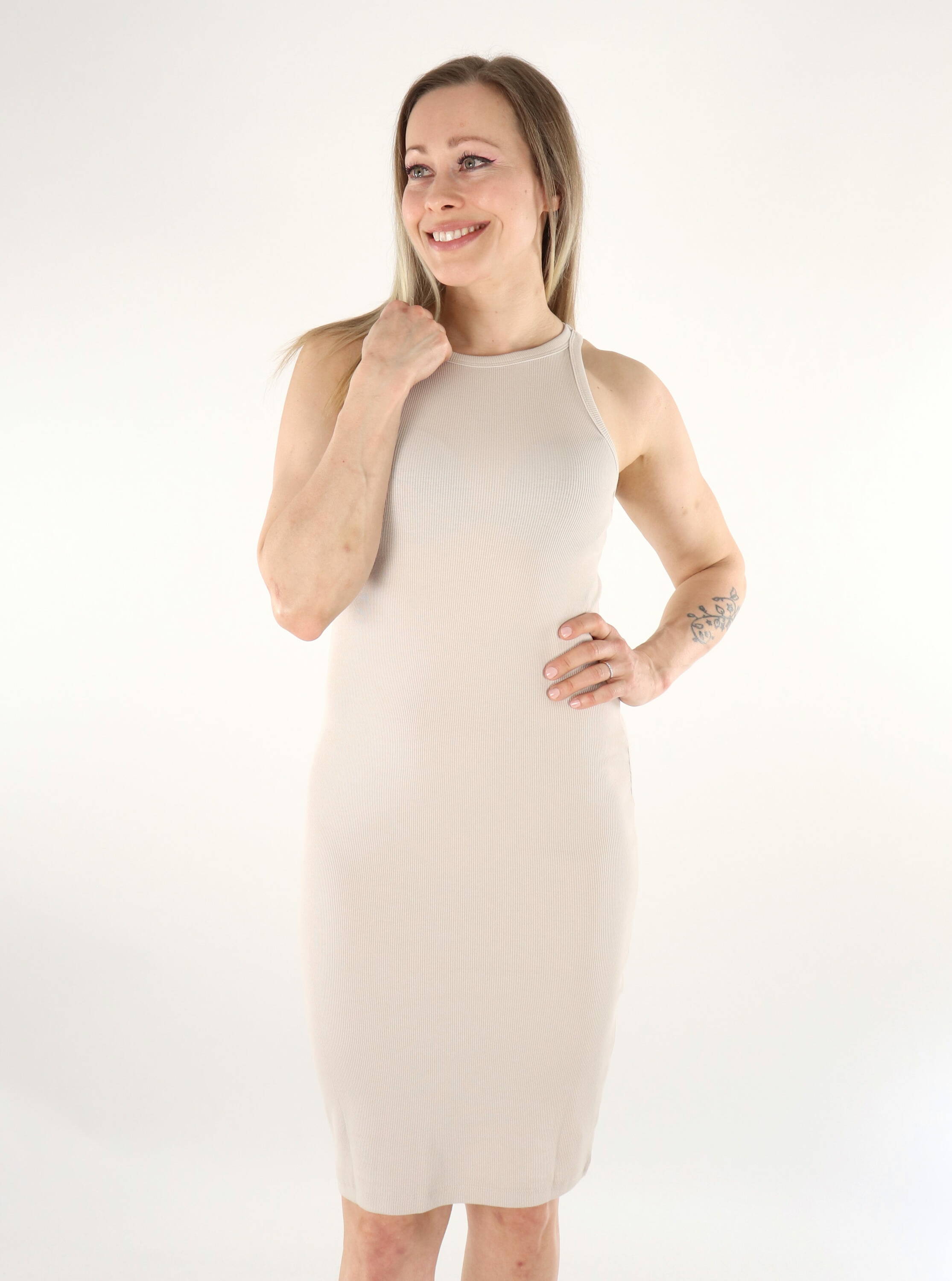 Vero Moda body-hugging dress made of stretchy and soft ribbed material.