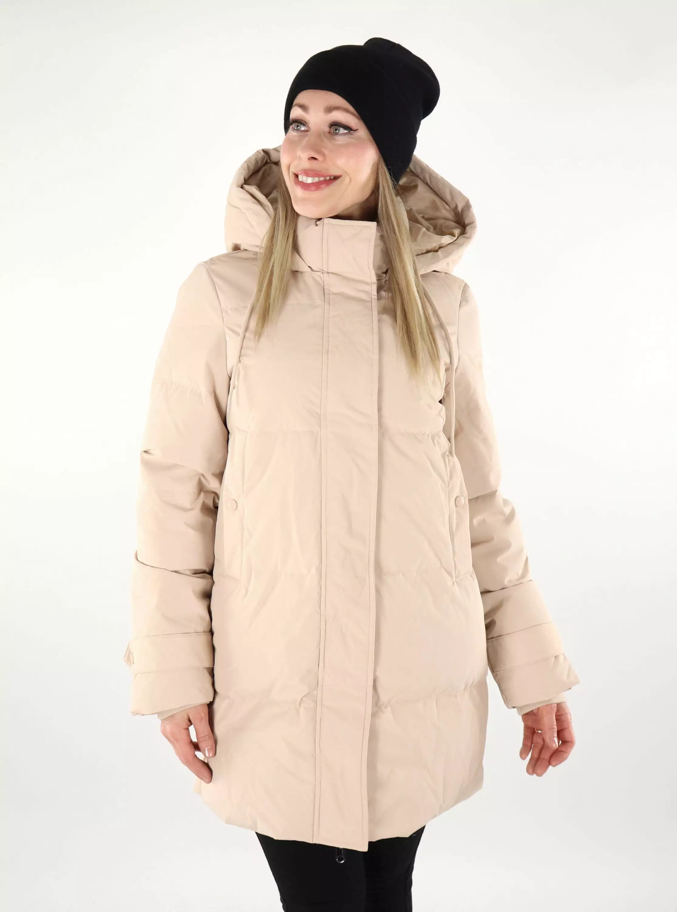 Vero Moda's beige down coat that keeps you warm even on the coldest winter days. Made from responsibly sourced down.