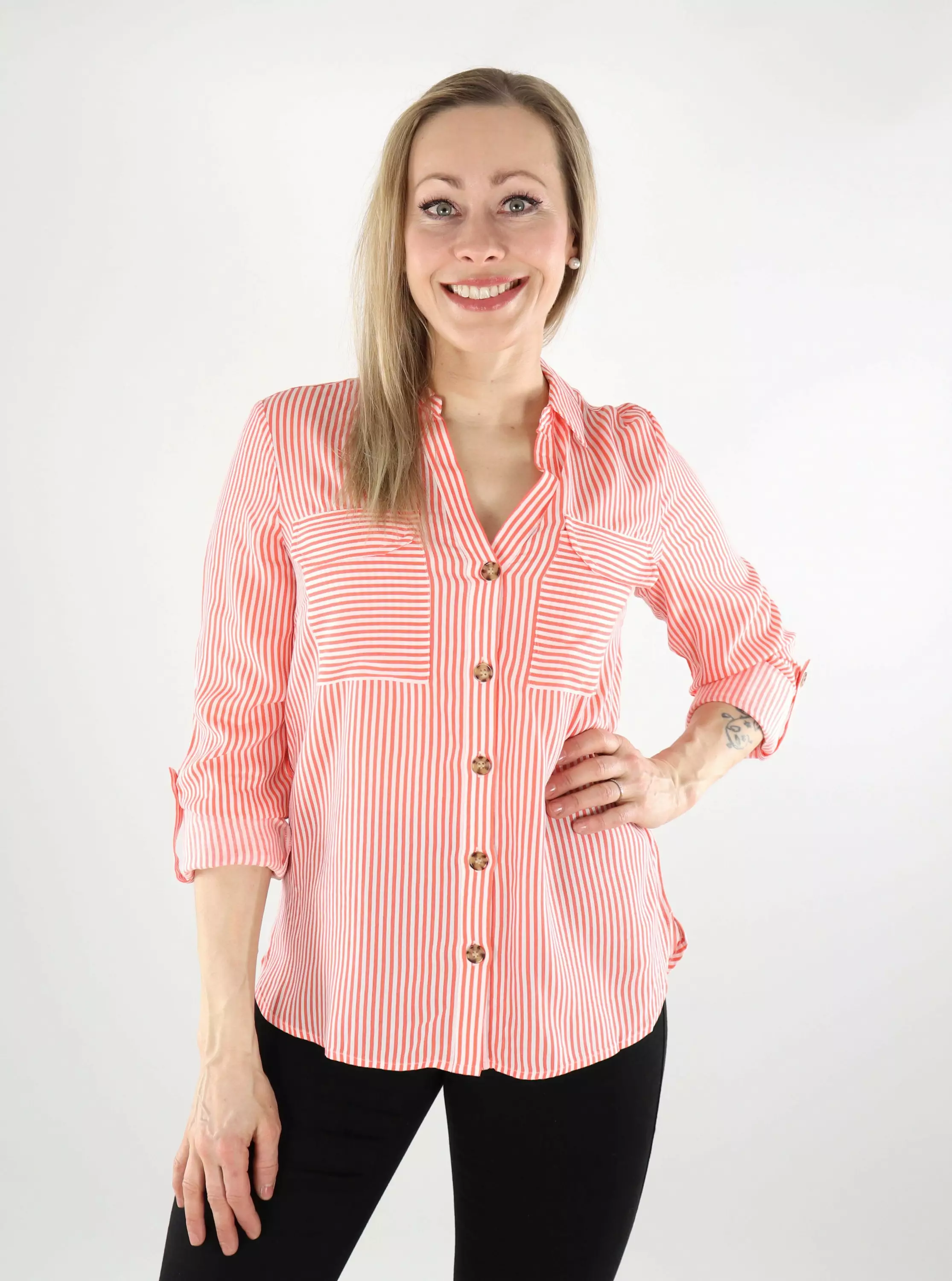 Vero Moda's striped shirt brings freshness to your everyday wear! Its stylishly rounded hem and longer cut at the back create a stylish silhouette. Reversible sleeves offer versatility and the ability to easily modify the look.