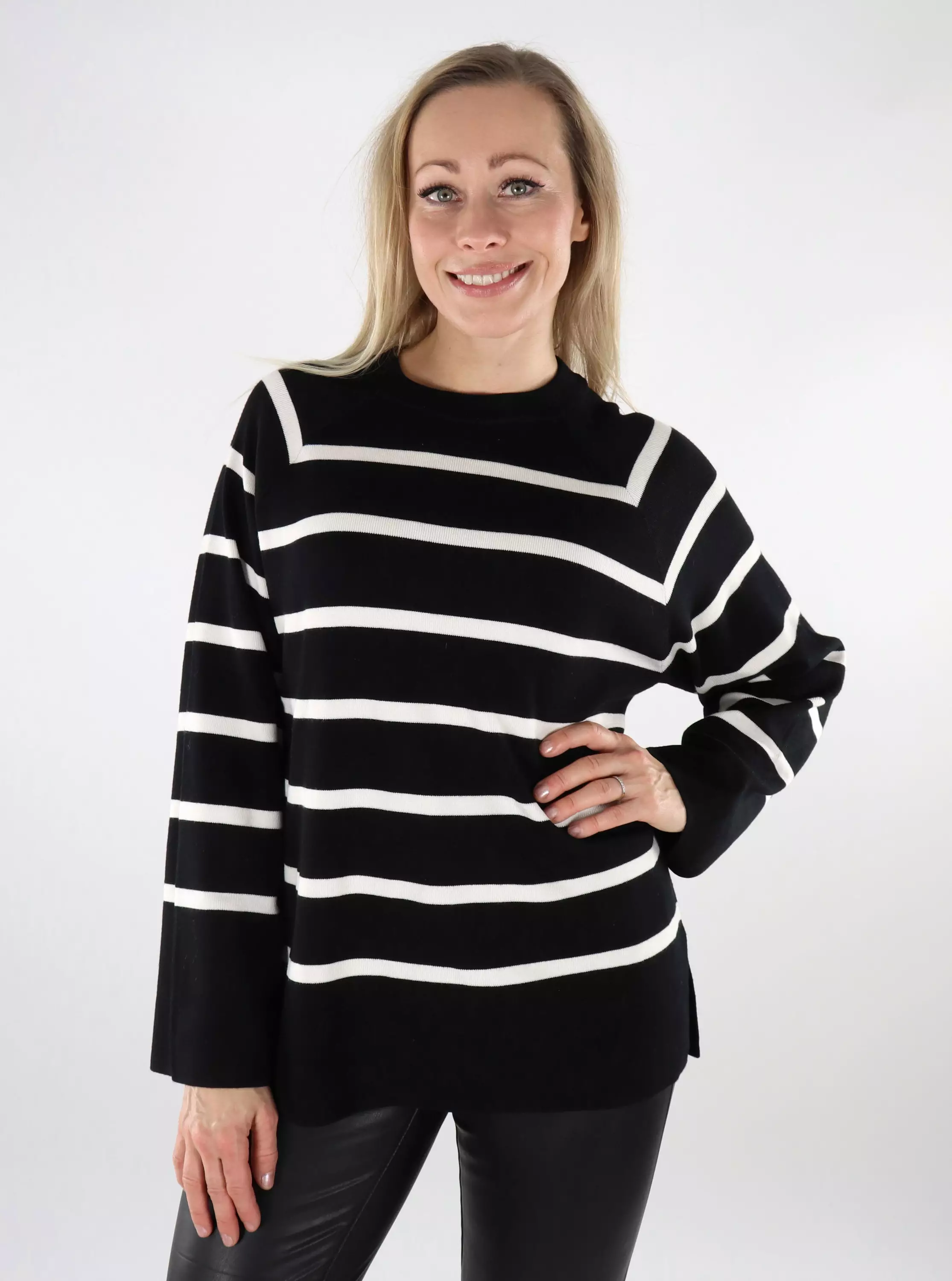 Women's casual model, striped sweater with slits on the sides. Slightly wider cuffs complete this trendy sweater perfectly!