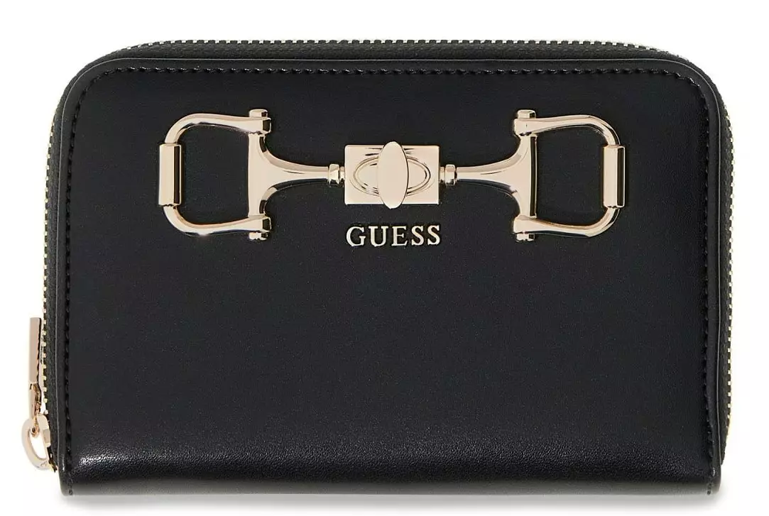 Tyylikäs Guess-lompakko kullanvärisillä yksityiskohdilla.