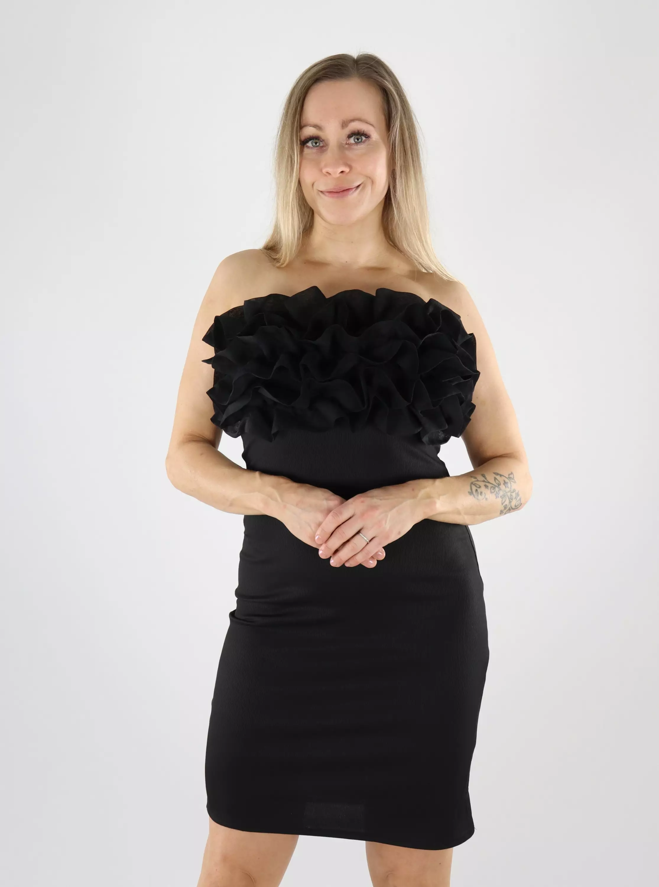 Vila's popular dress with a flattering tube design and feminine frill details at the front. The silicone edge on the inside keeps the top firmly in place so you can move without worry.