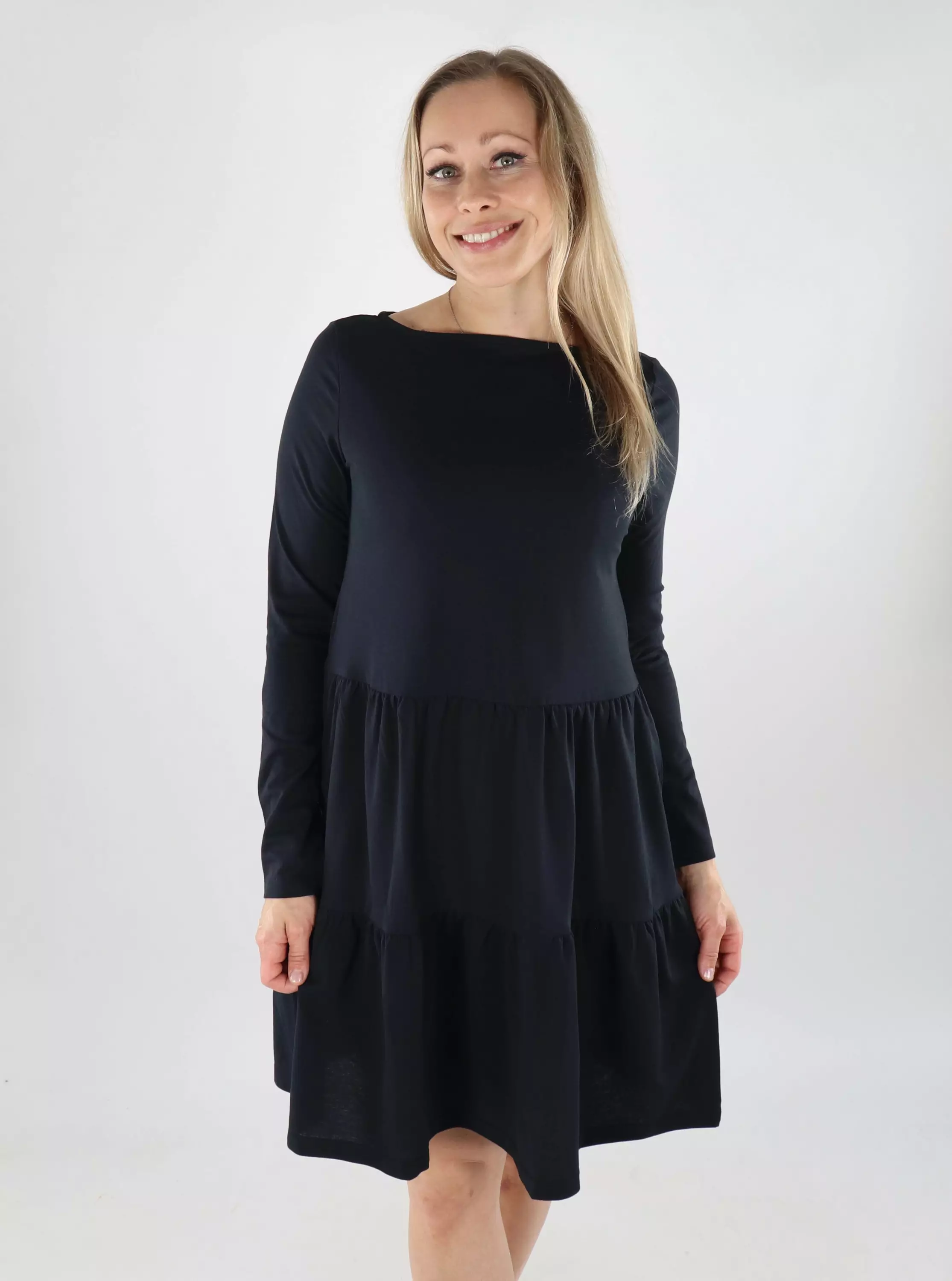 VILA's A-line jersey dress is a casual and versatile piece for everyday wear! The dress has long sleeves and a classic boatneck, and the stretchy jersey fabric makes it comfortable to wear.