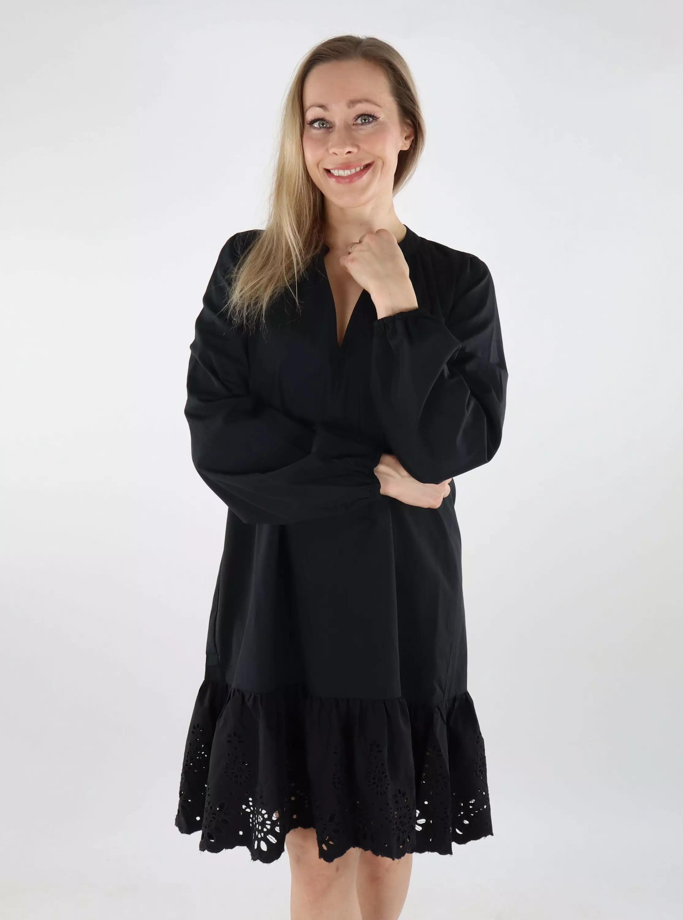 A short dress from Vila with a beautiful lace-patterned fabric at the hem and a drawstring at the waist. The light and airy model is perfect for summer days or more festive occasions!