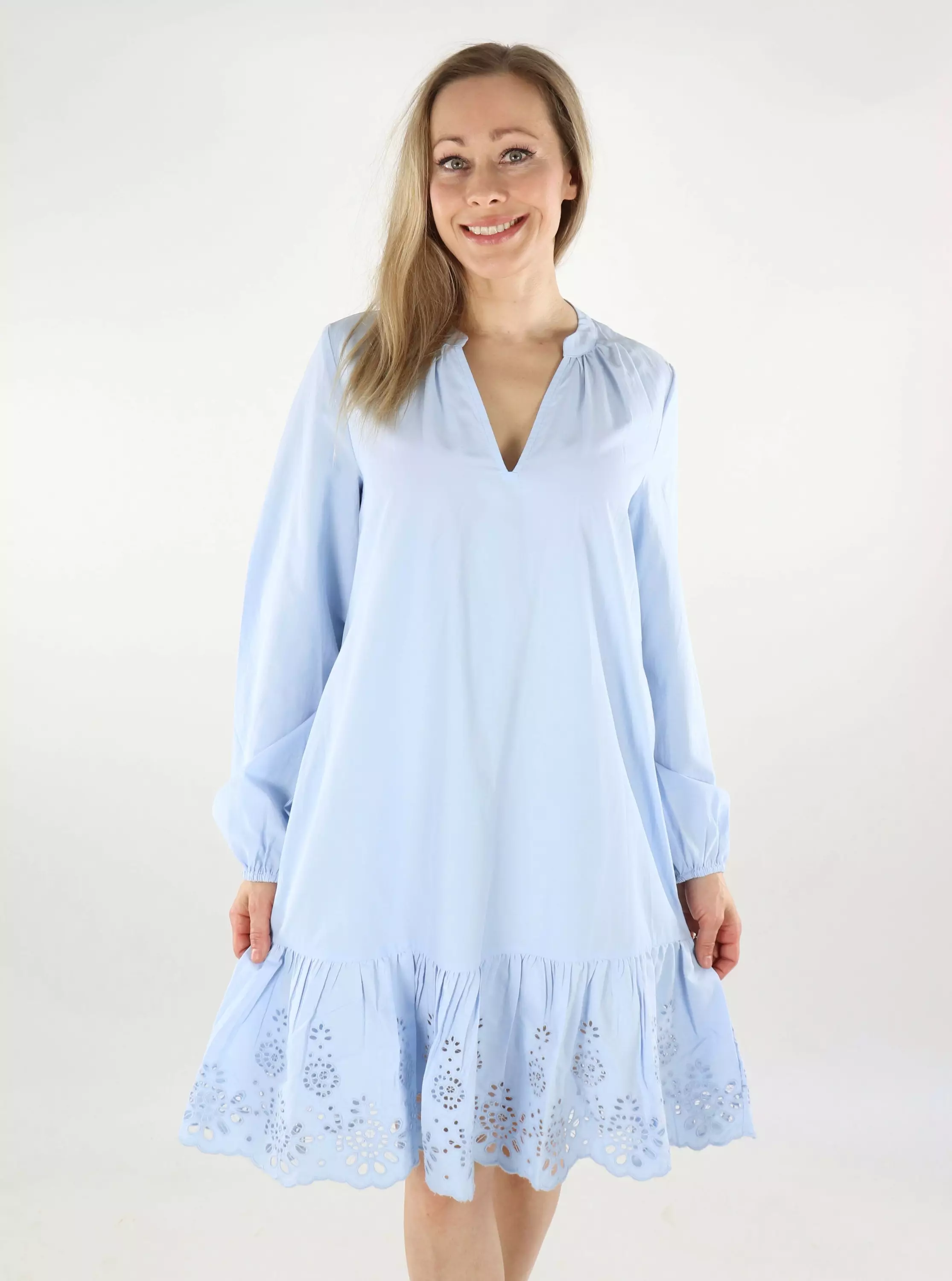 A short dress from Vila with a beautiful lace-patterned fabric at the hem and a drawstring at the waist. The light and airy model is perfect for summer days or more festive occasions!