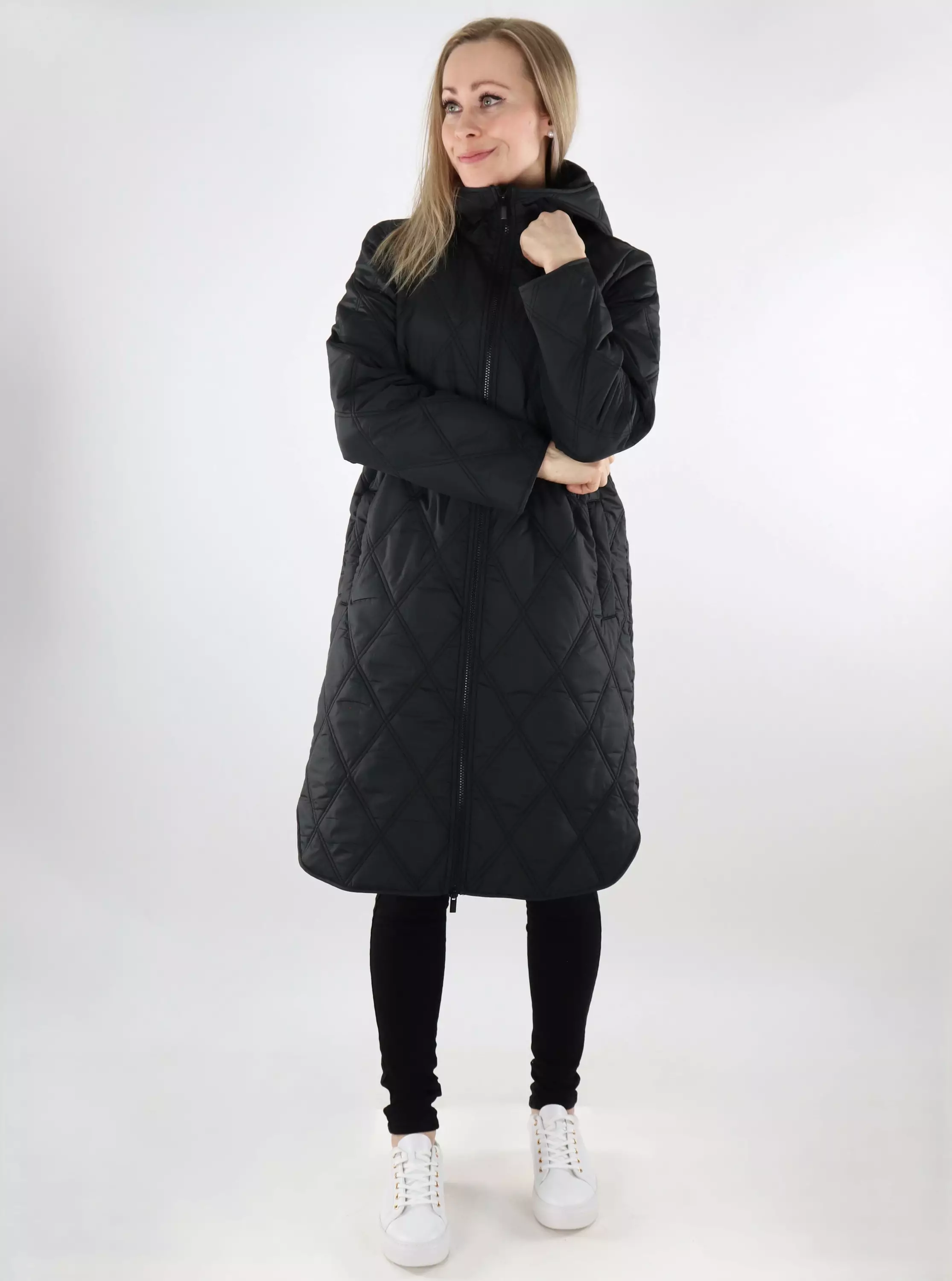 Vila's beautiful quilted lightweight padded jacket with a fixed hood and rounded hem.