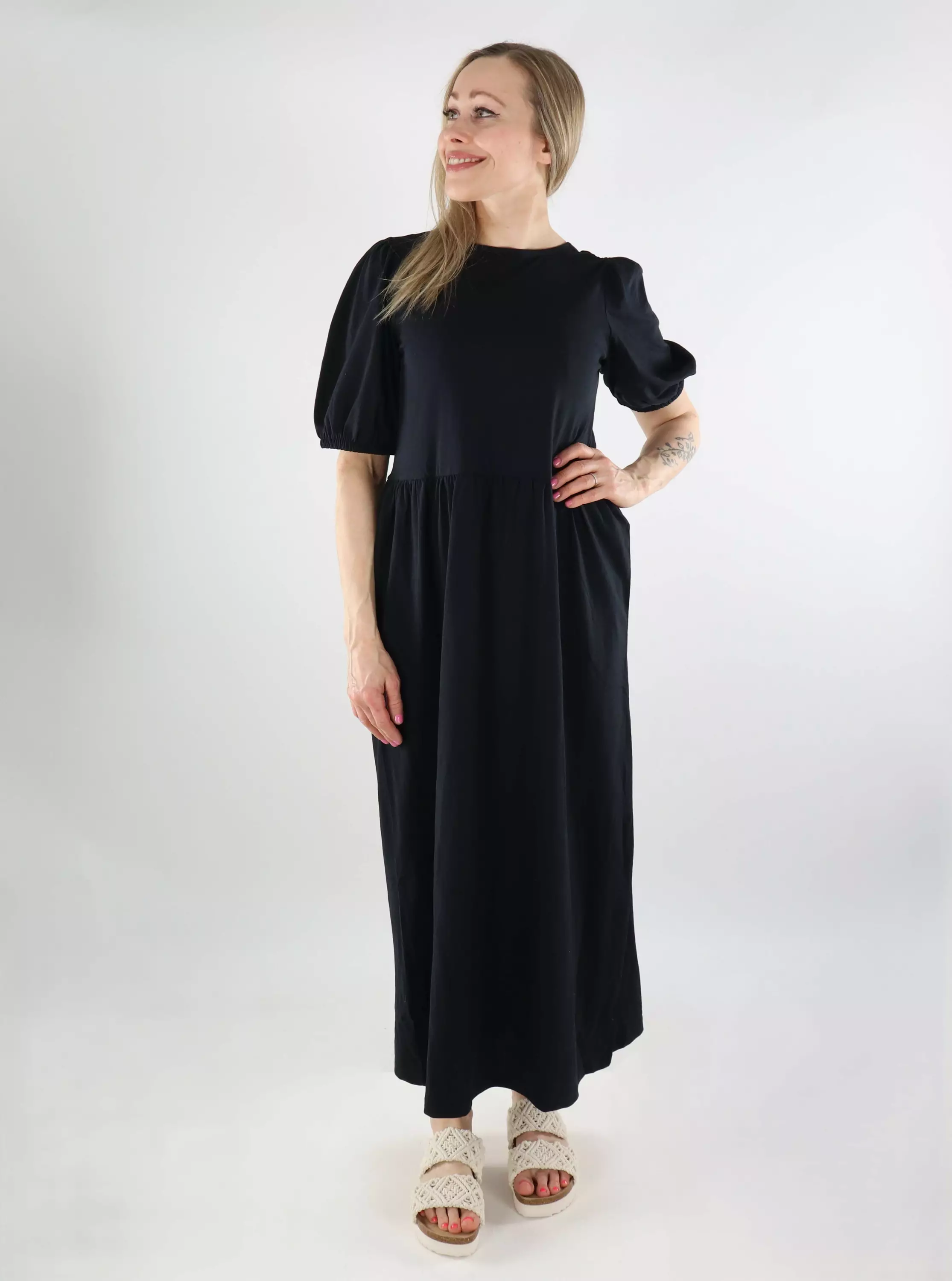 Vila's casual midi dress with a beautiful deep neckline at the back. Soft and stretchy organic cotton blend!